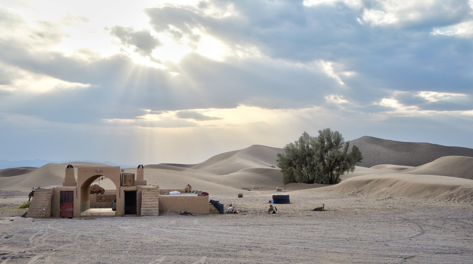 Обнаружили посреди пустыни военную базу, а чуть дальше вообще грунтовую взлетную полосу и системы ЗРК. Даже на спутниковых картах этих объектов нет. Зато мы успели найти и белый песок, и каменистые барханы, и мелкую поросль в пустыне, и верблюдов. Увидели кучу караван-сараев посреди пустыни, а также затерянные в песках поселения, состоящие из караван-сарая и пары глинобитных домиков. На один из барханов даже залезли.