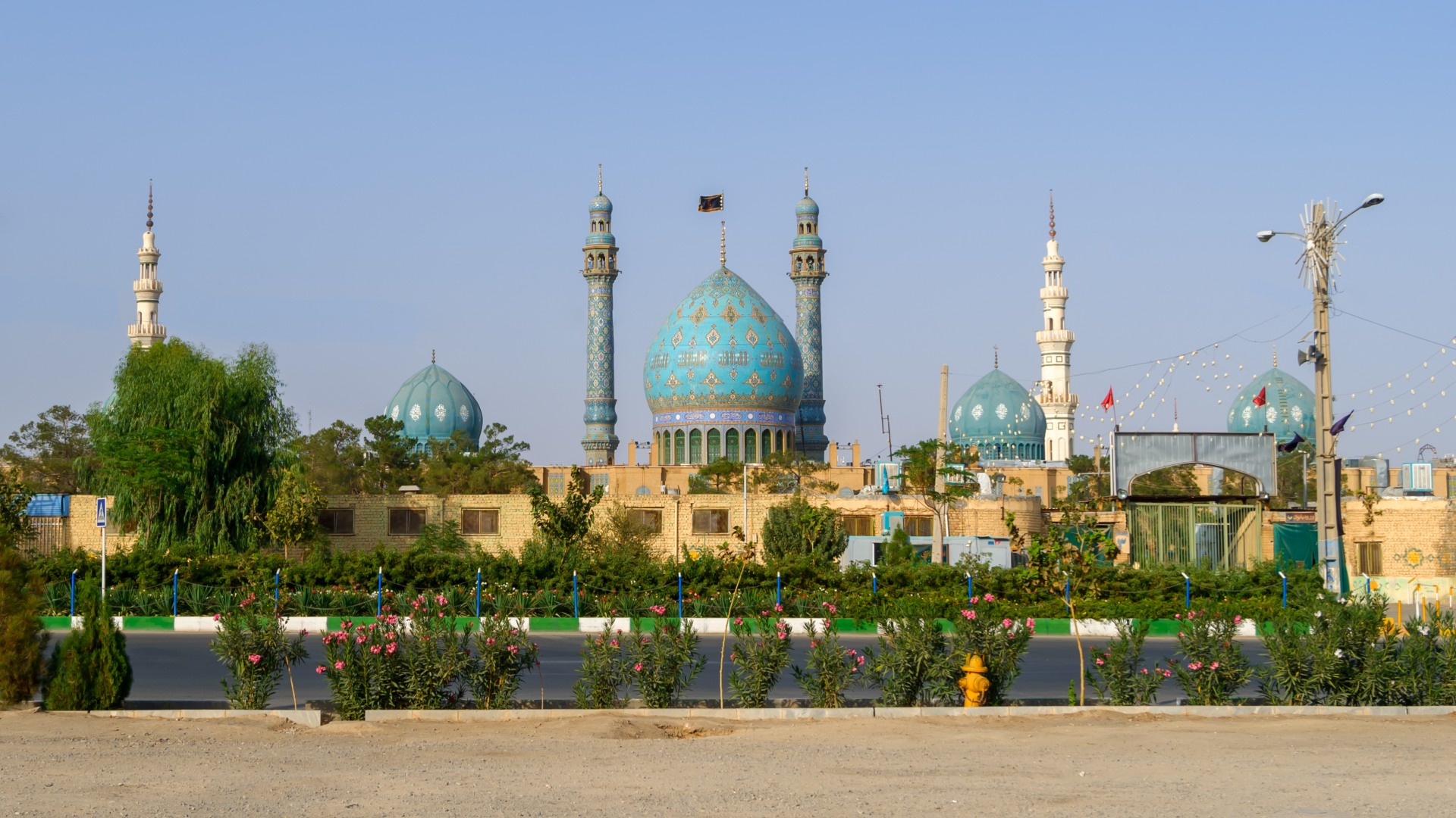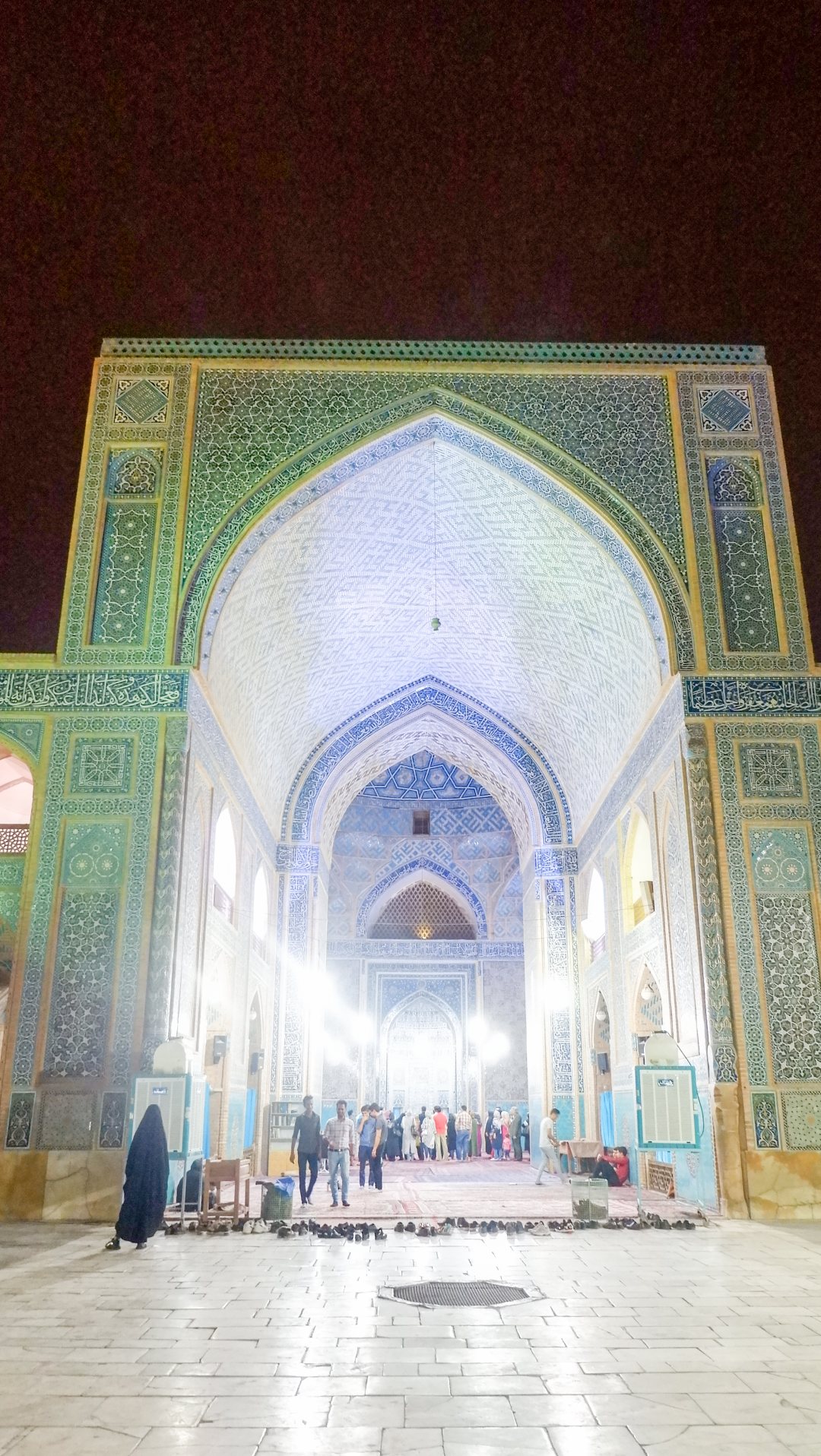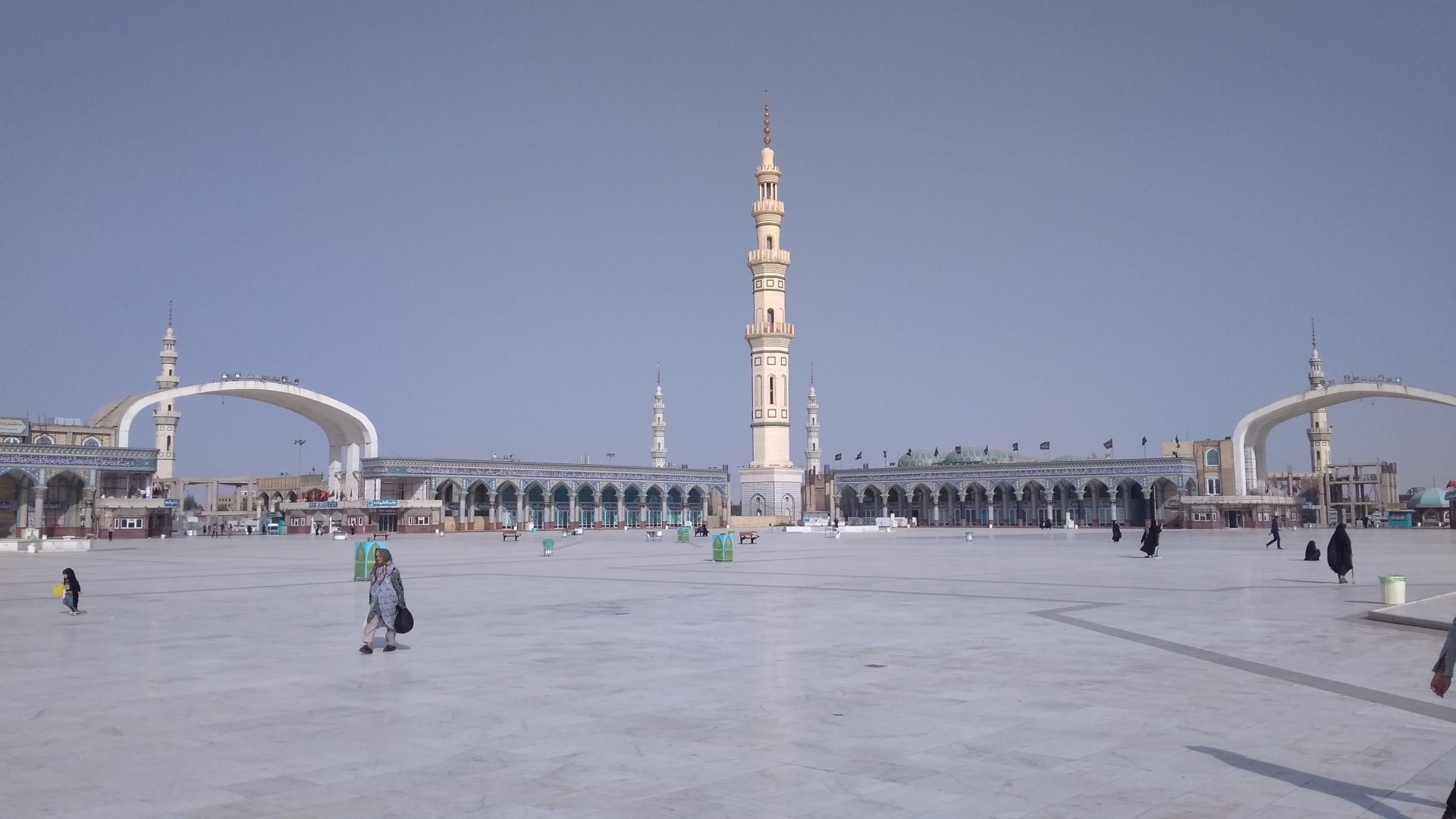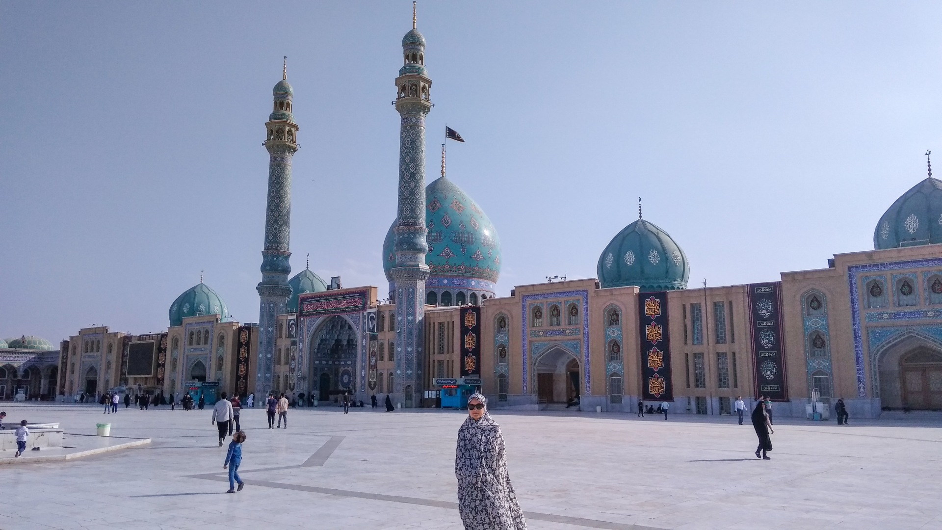 Джамкаран — это огромный комплекс, занимающий целый квартал, с небесно-голубыми куполами, светлым камнем и фонтаном в центре. Белоснежным камнем вымощена даже внутренняя площадь. А по периметру, в тени, сложены рулонами огромные ковры — для желающих поспать, прилечь или помолиться.
