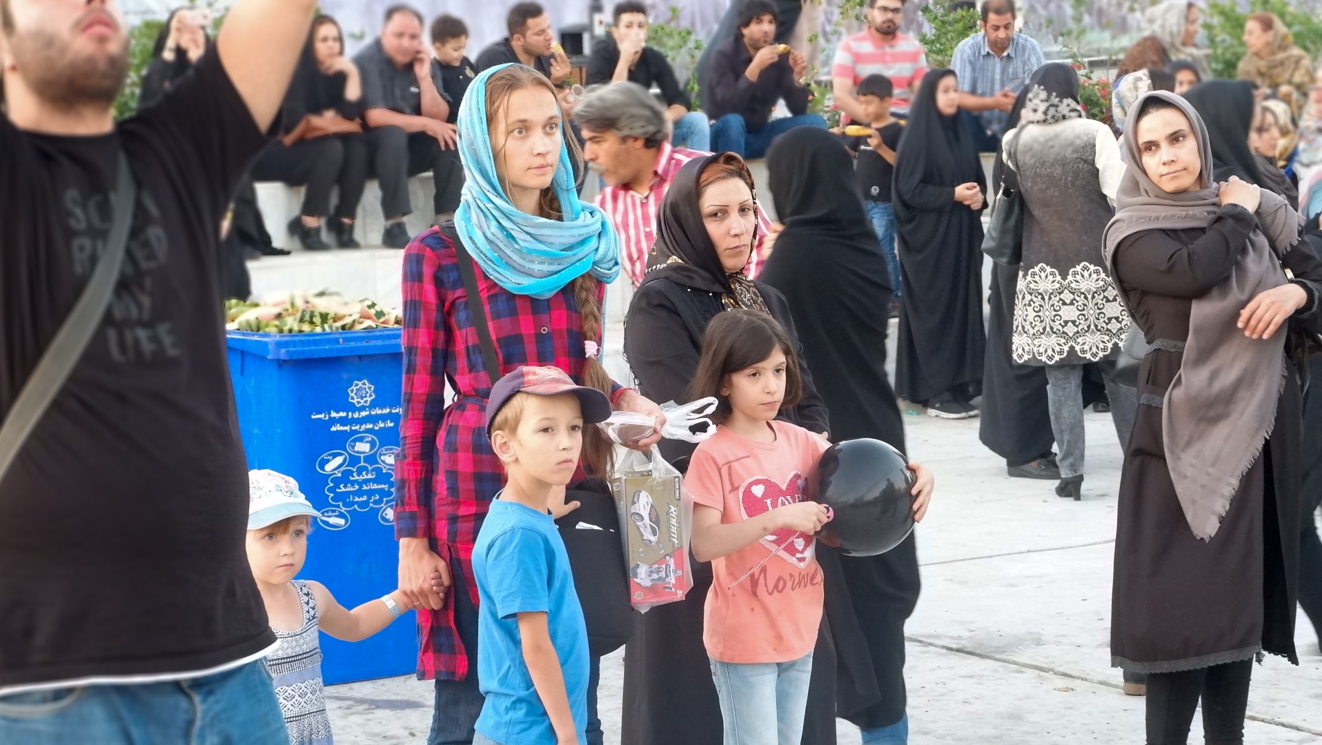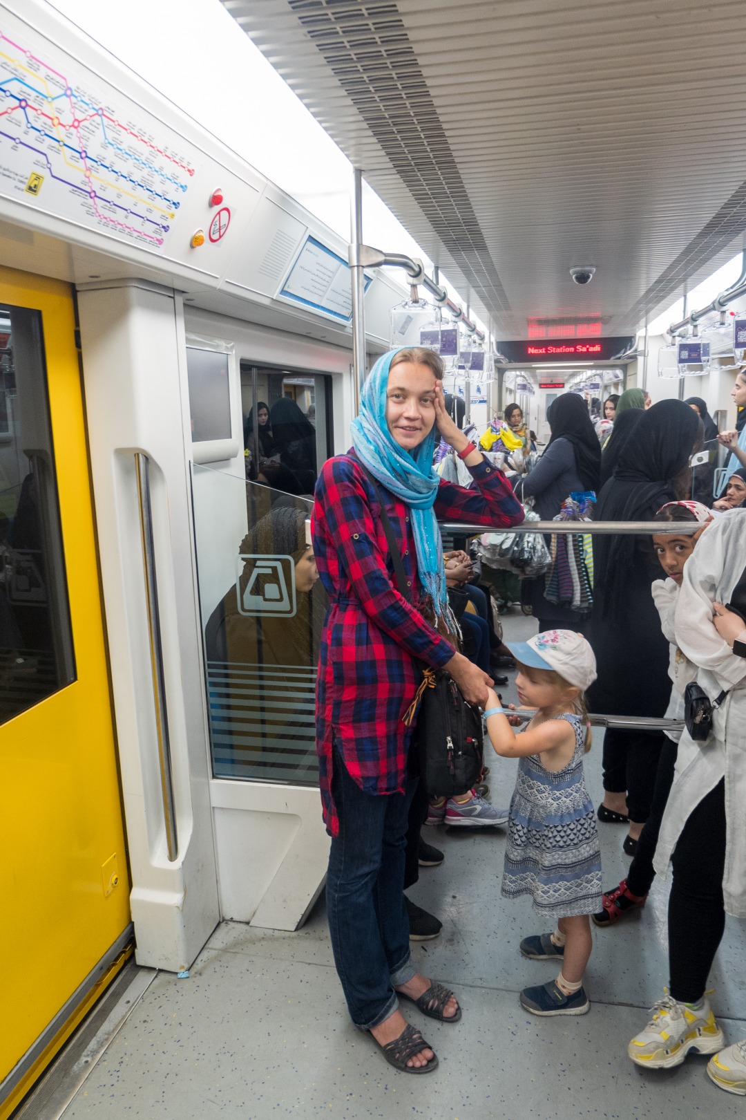 Зато вот в автобусы, например, вход для мужчин и женщин раздельный. Так и едут: первые полсалона для мужчин, а женщины сзади. Что-то похожее тут происходит в метро в Тегеране.