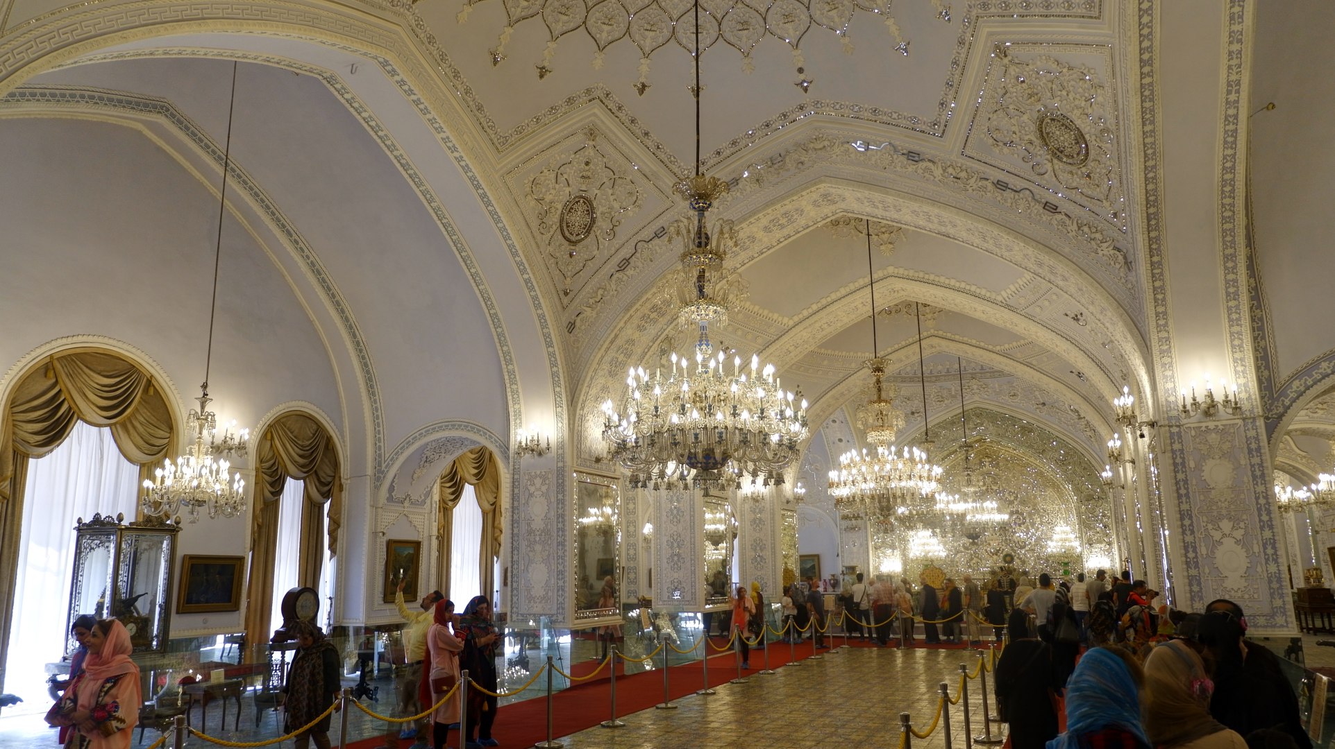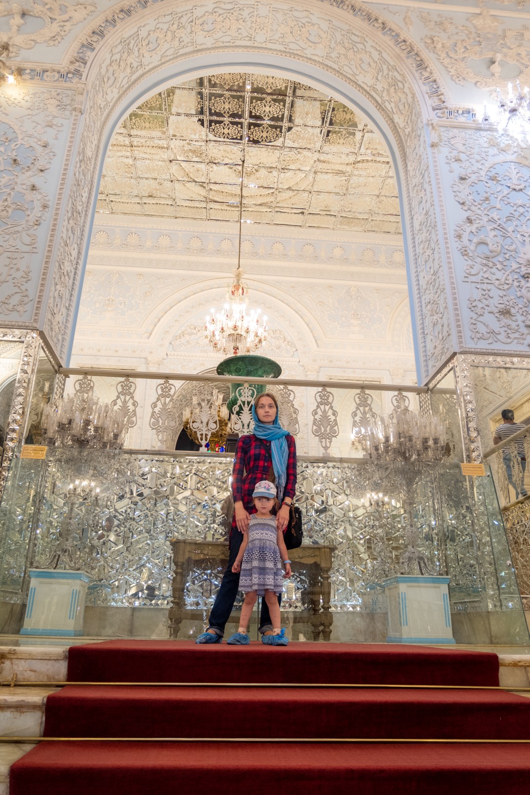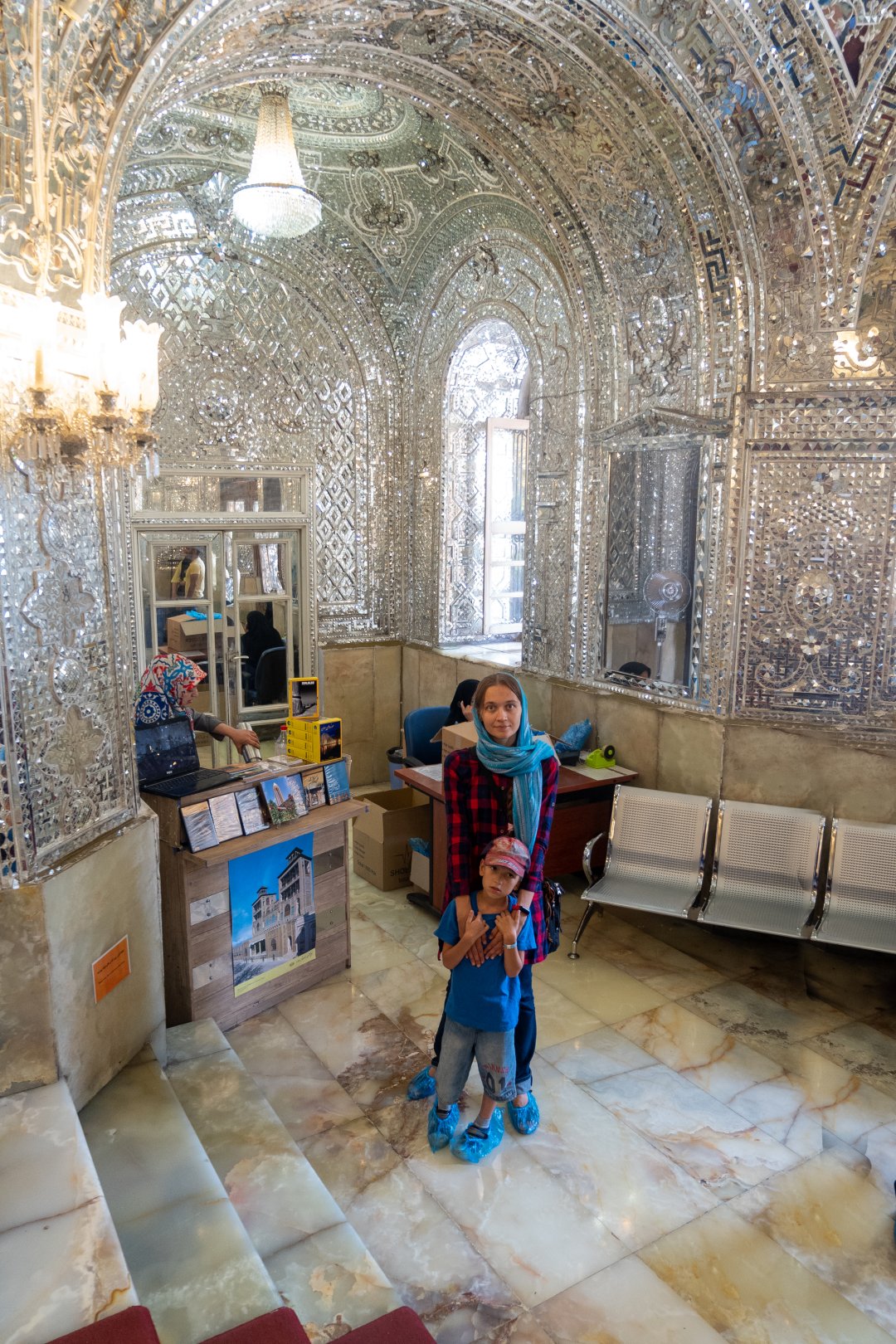 Сложность в том, что зайти внутрь туристам без сопровождения нельзя — нужно дождаться специального гида. И фотографировать фотоаппаратом тоже нельзя, но можно снимать на мобильник. И обязательно девушки должны надеть чадор — ту самую накидку с головы до пят, но с рукавами.