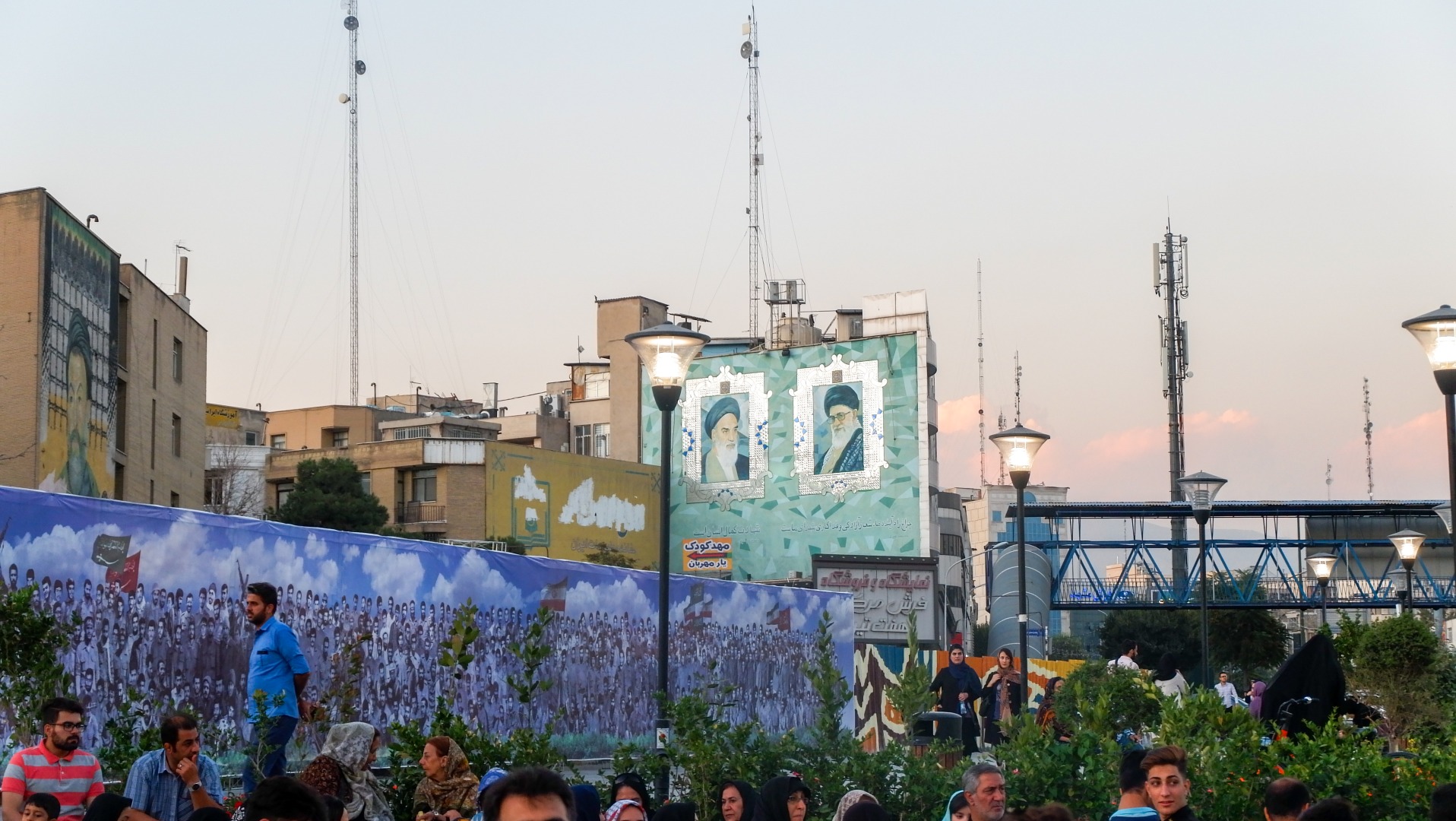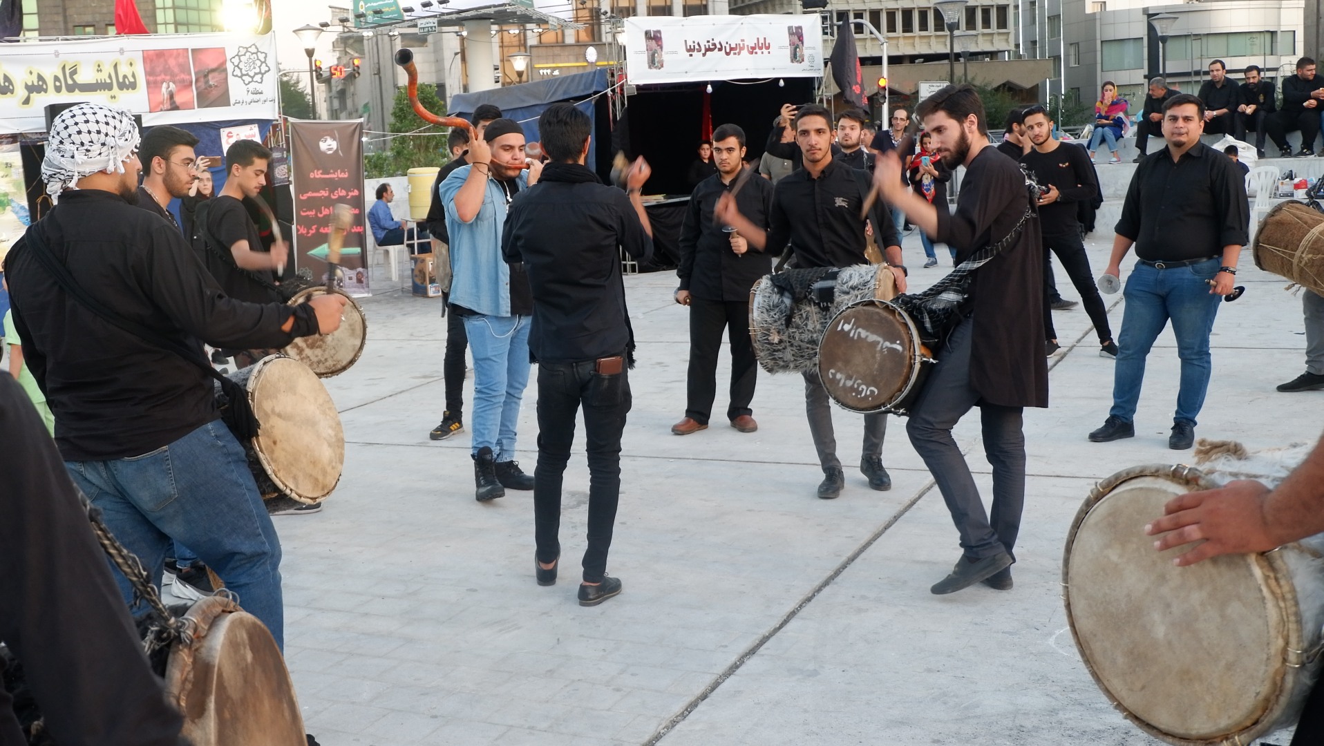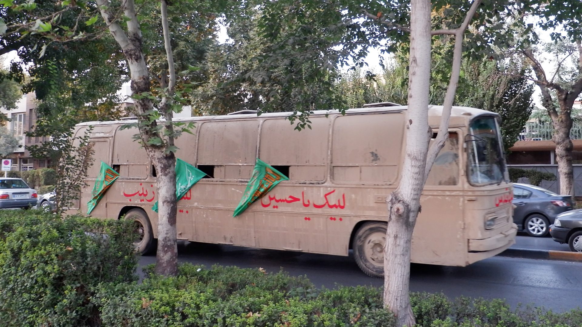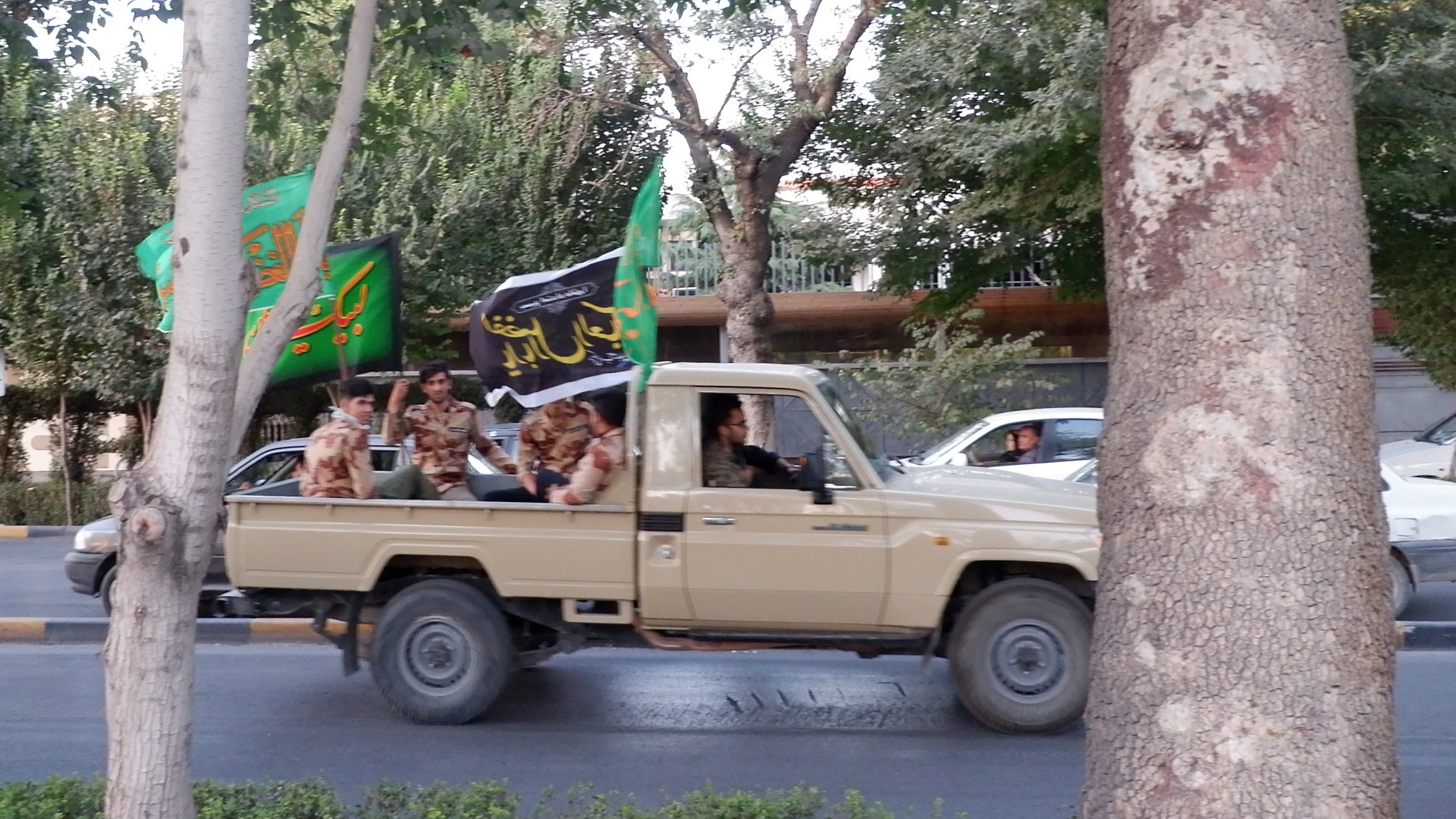 Еще увидели отголоски вспоминания начала Ирано-Иракской войны. По городу ехала колонна с музыкой и патриотическими песнями, которая перевозила солдат.