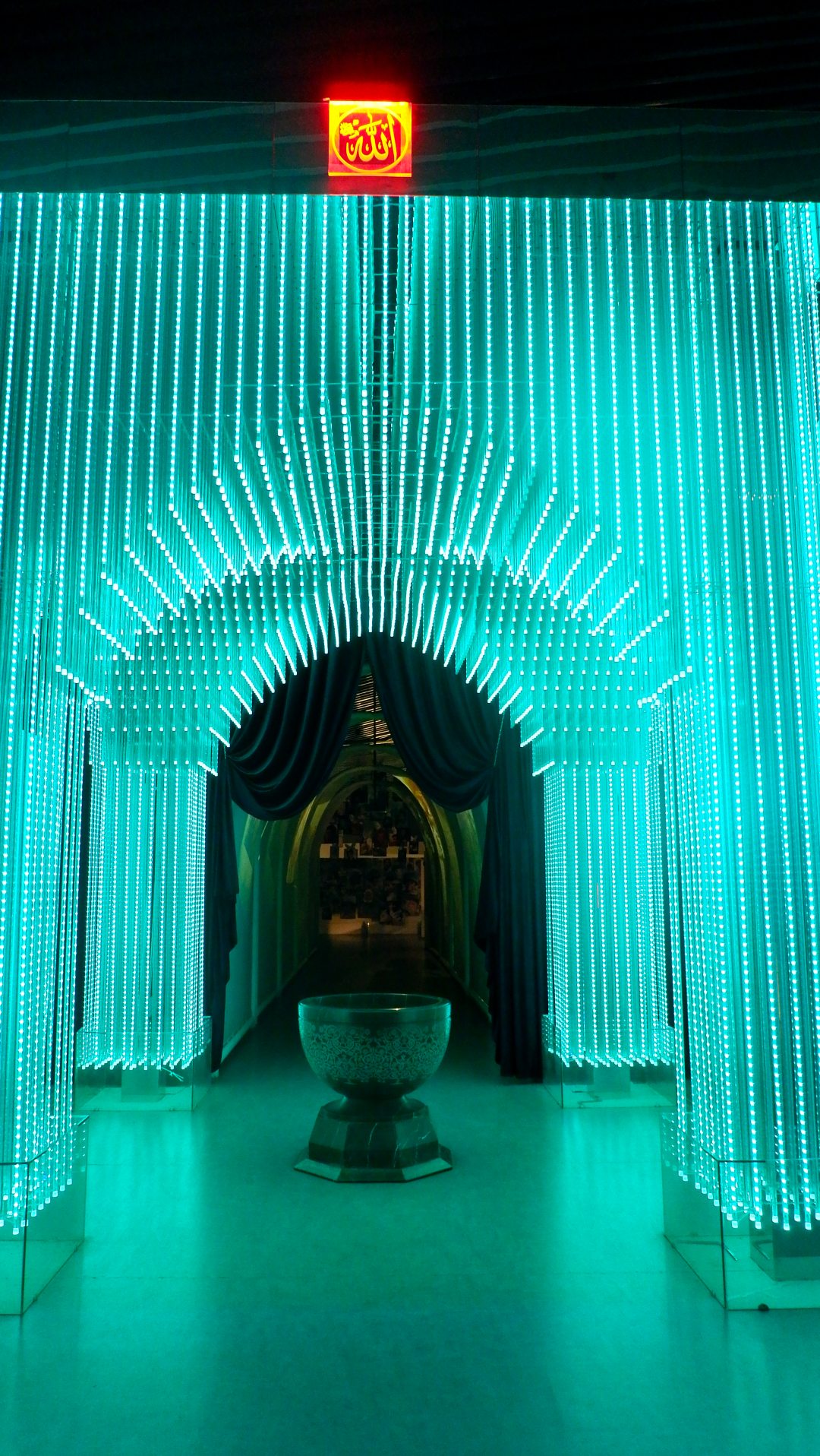 Особенность в том, что вся поверхность мечети внутри выложена кусочками зеркал. И когда включается подсветка, вся мечеть сверкает тысячами отражений.