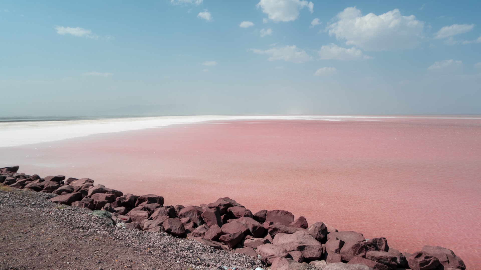 А дальше было огромное соленое озеро. С одного края оно до горизонта покрыто белоснежной коркой соли, а с другой — до горизонта плещутся розовые (!) волны!