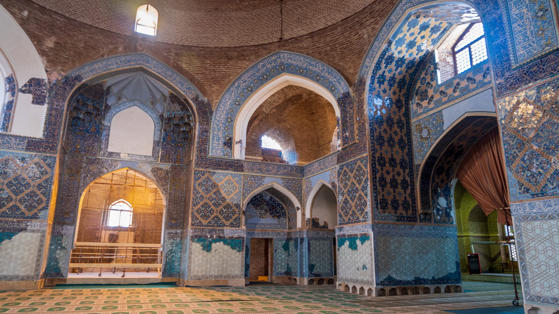 По мере заполнения рынка там стало уже не комфортно находиться, и мы отправились к Голубой Мечети. Она совершенно не примечательна снаружи, но внутри видны остатки некогда очень красивой голубой мозаики. К сожалению, время ее не пощадило.