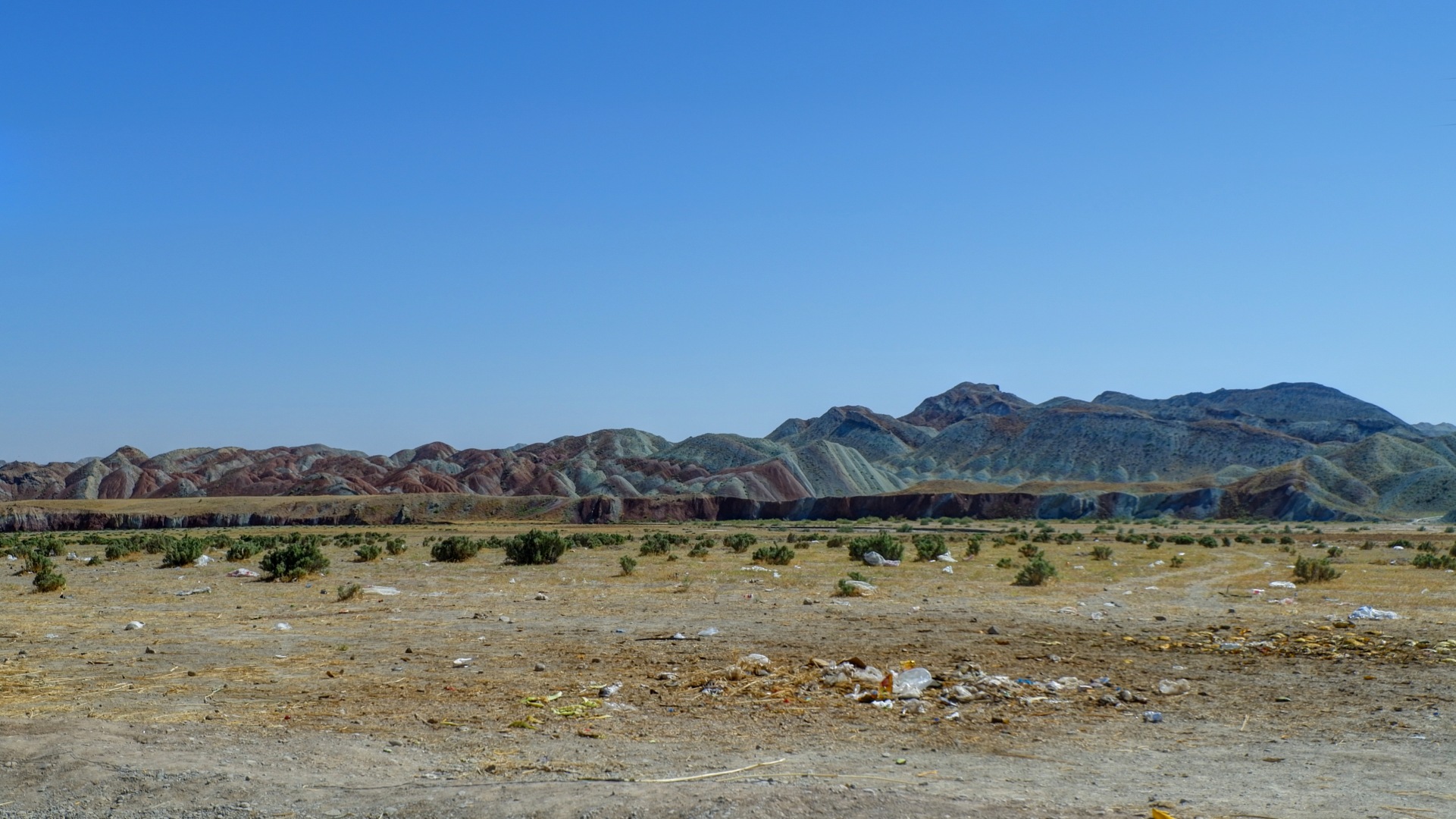 После Тебриза выехали на юг. Очень скоро пейзаж стал более пустынным, потянулись цветные горы,