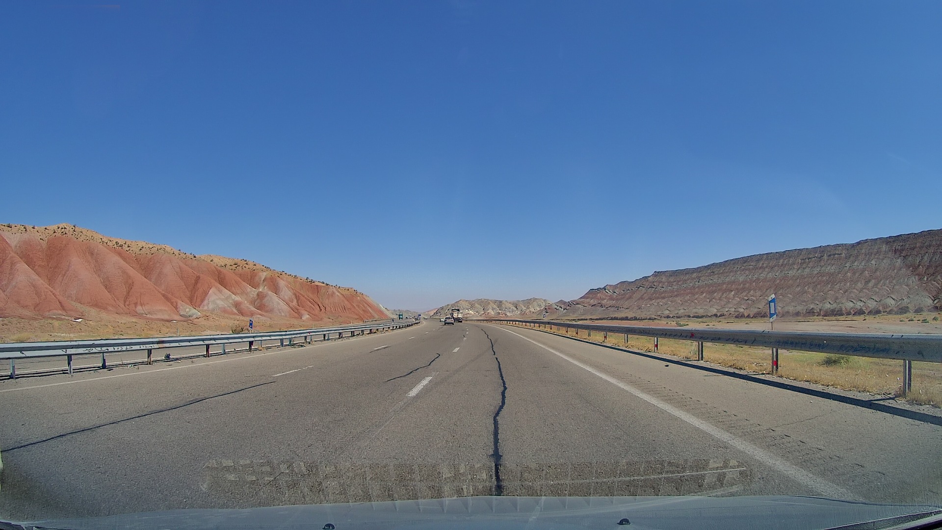 Если говорить про дороги в Иране, то они есть платные и бесплатные. По качеству покрытия и количеству полос они почти не отличаются, но платная обходит все деревни, и ограничение по скорости там немного более лояльное. И стоит совсем не дорого. Но в целом особой разницы нет. Машины все достаточно старые, начиная с 70-х годов. Периодически встречаются местные модификации Logan, Duster.