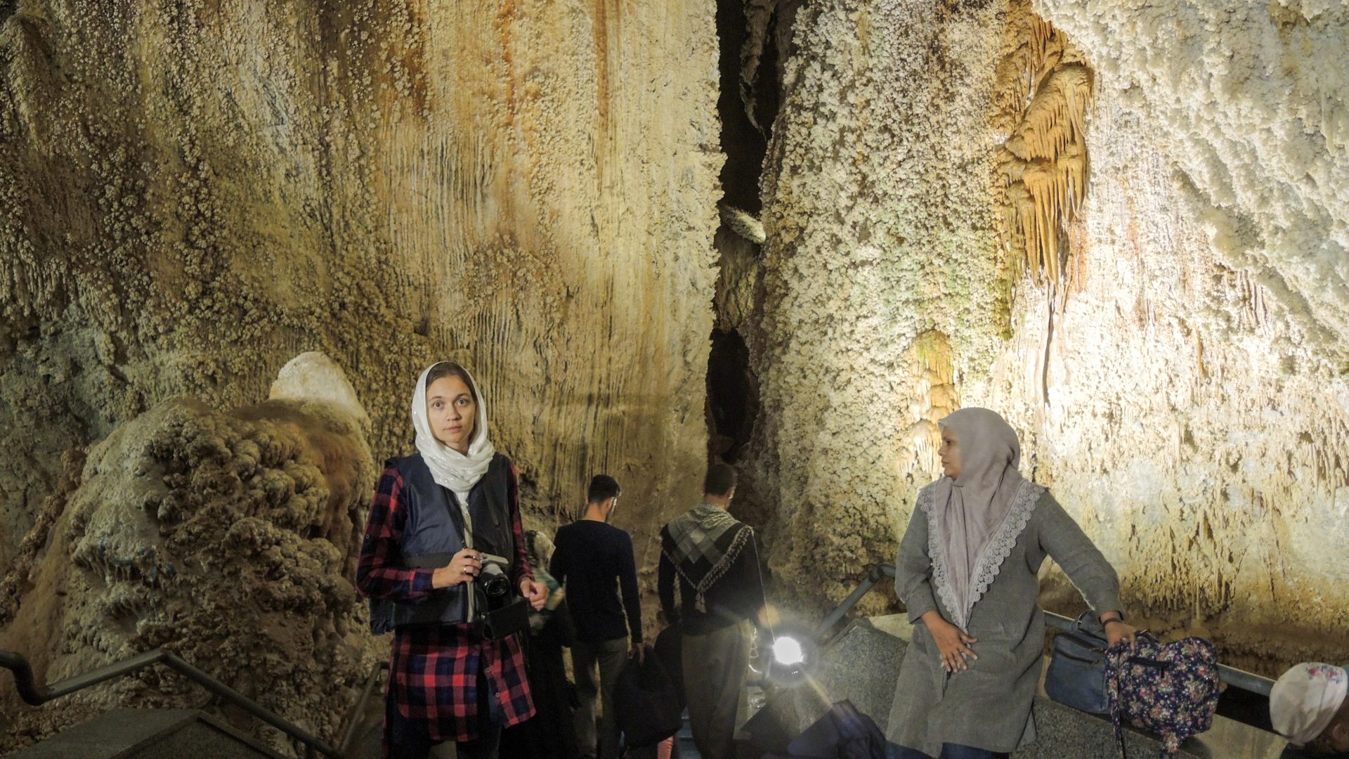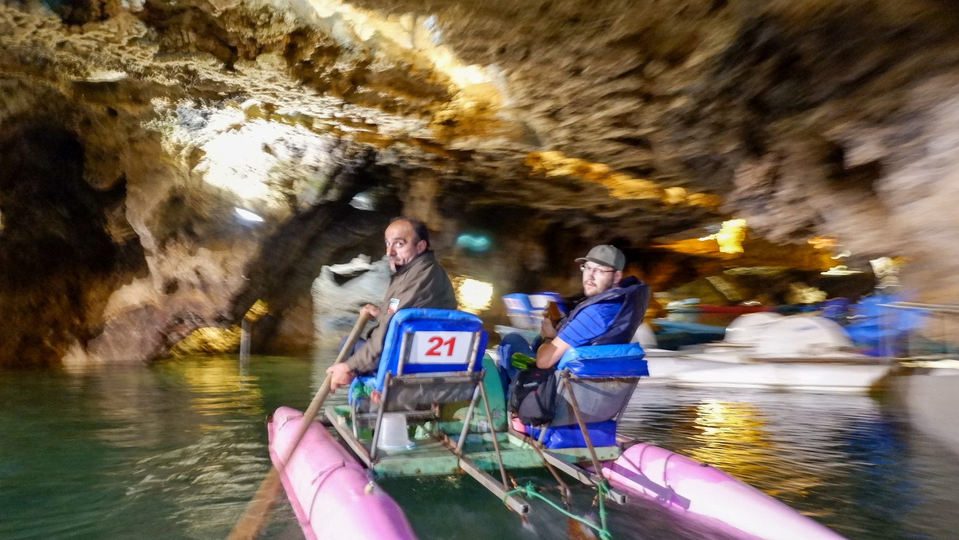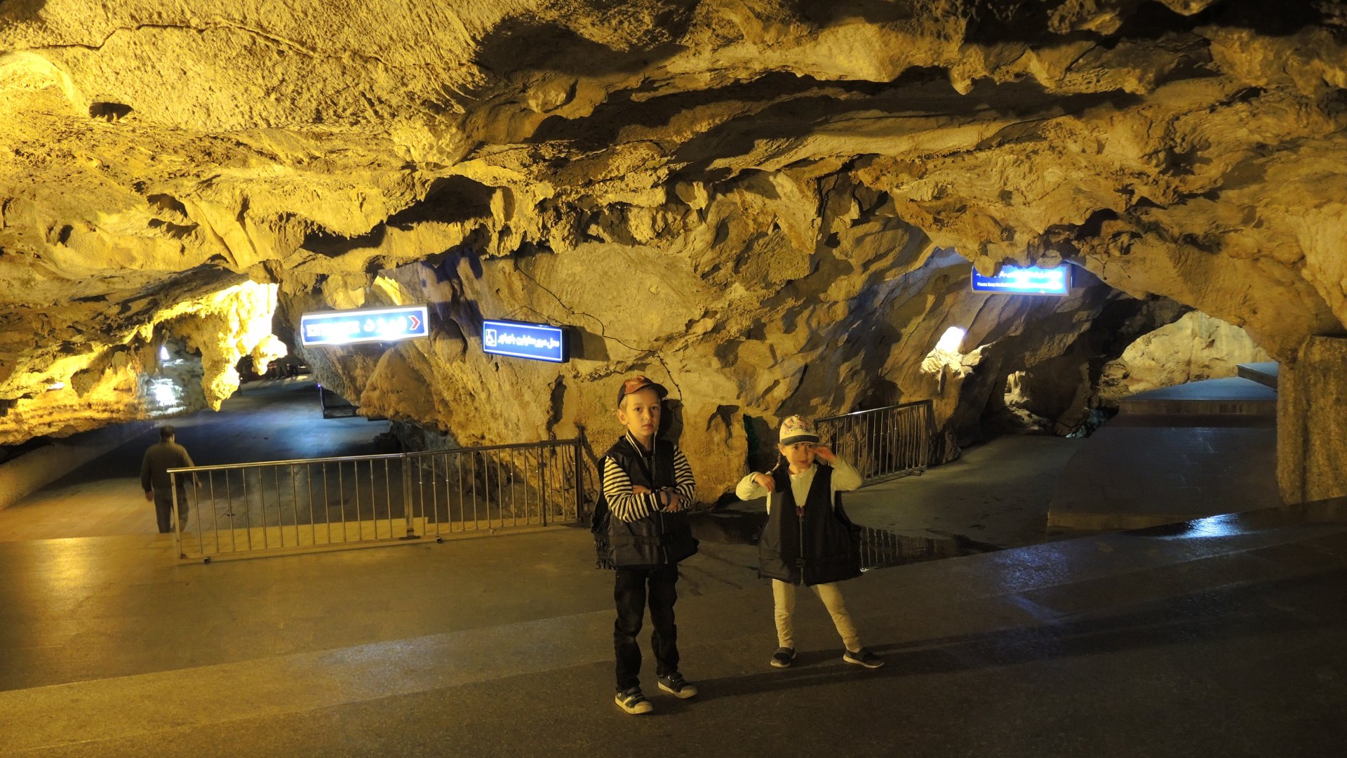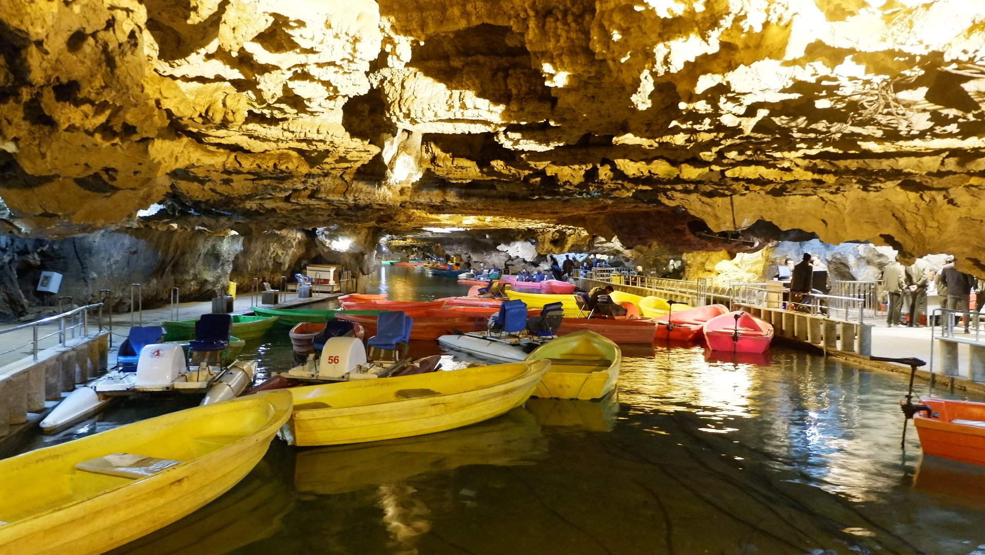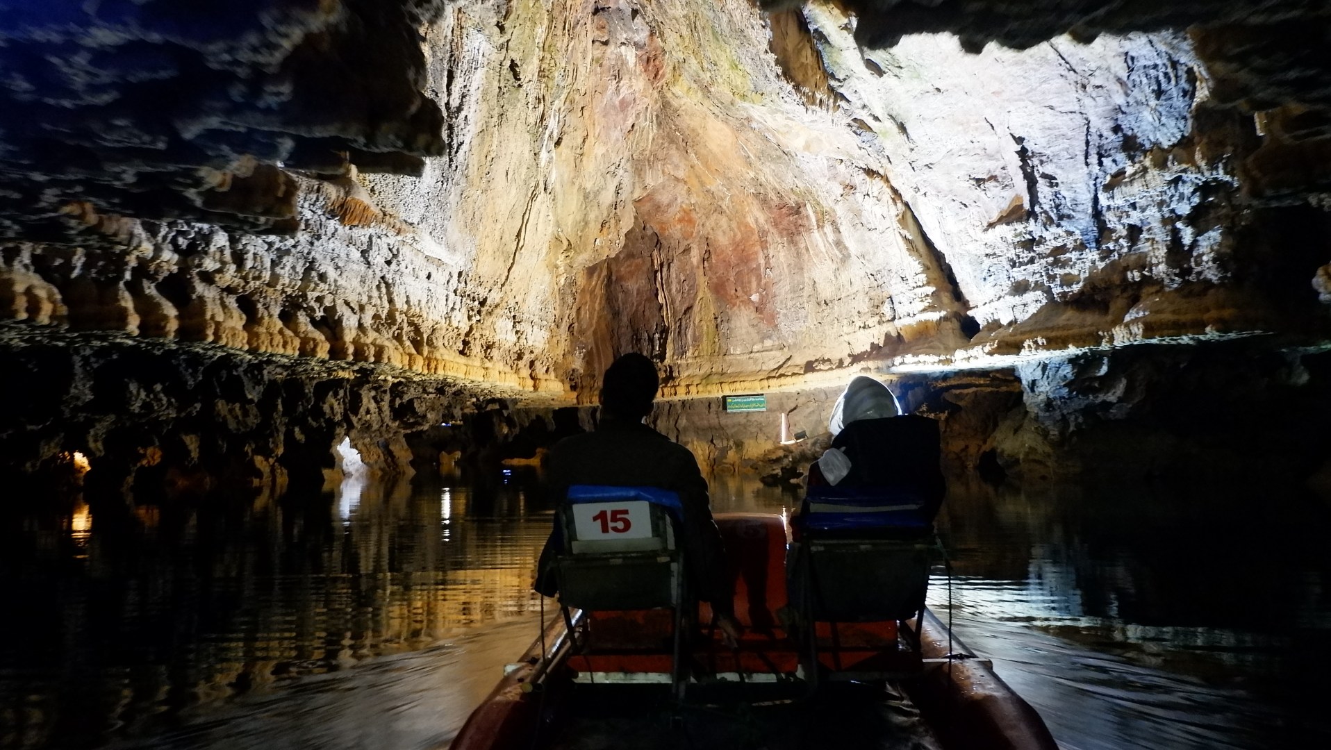 Пещера АлиСадр — третья по величине в мире вообще, но первая по размеру именно водная пещера. Протяженность маршрута — 14 км, для туристов открыто только 4 км, при этом пешком мы идём только половину, вторая половина — на лодке, прицепленной к катамарану. Причем одно сиденье на катамаране занимает гид, а вторую — один из гостей. Как говорится, любишь кататься — люби и саночки возить.))))