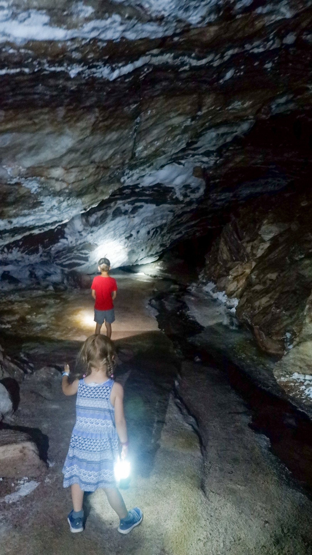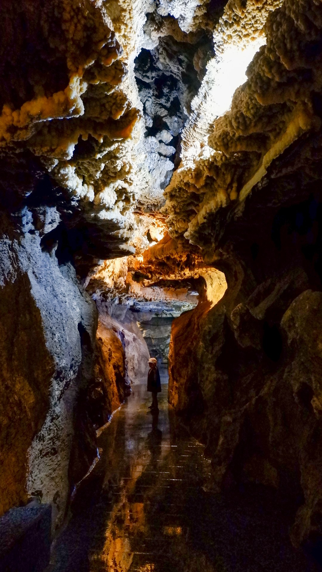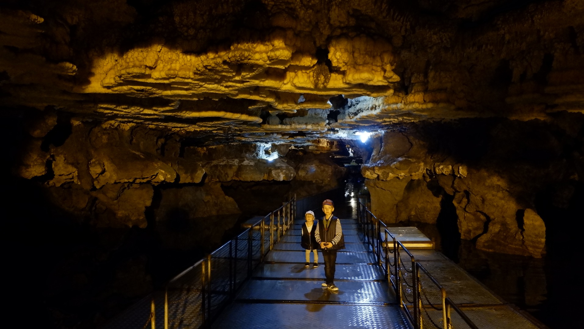 Про саму пещеру можно говорить часами. Какие у нее местами узкие и пугающие проходы, и какие там огромные залы. Какие необычные потолки, напоминающие миллионы орлиных лап, и красивые стены с натечными отложениями в виде белых цветов на пешей части маршрута. Как часть пути приходится идти по настеленным понтонам, чтобы замкнуть маршрут. Но это лучше видеть живьем.