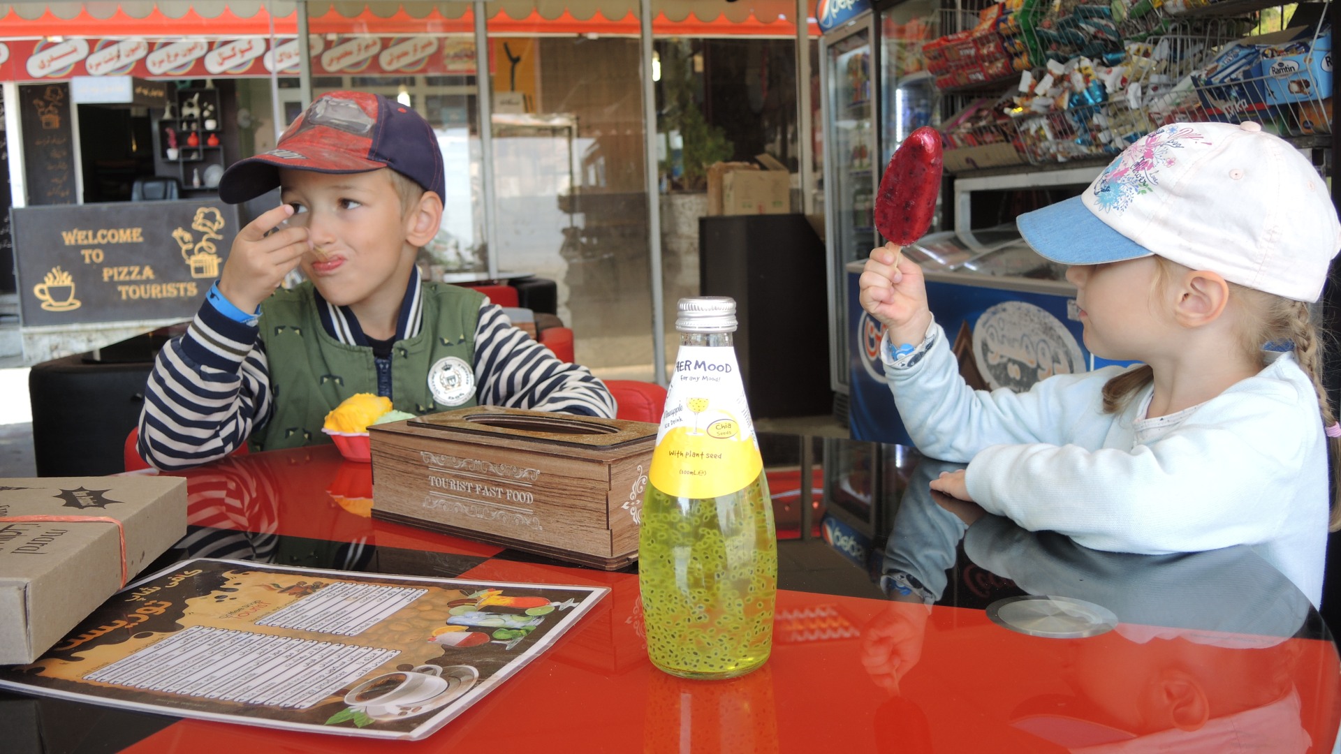 К тому моменту, когда мы прошли от конца деревни до начала, приехал первый автобус с туристами, и открылось первое кафе. Там накормили детей мороженым, и с другими туристами снова прошли деревню, чтоб вернуться к отелю.