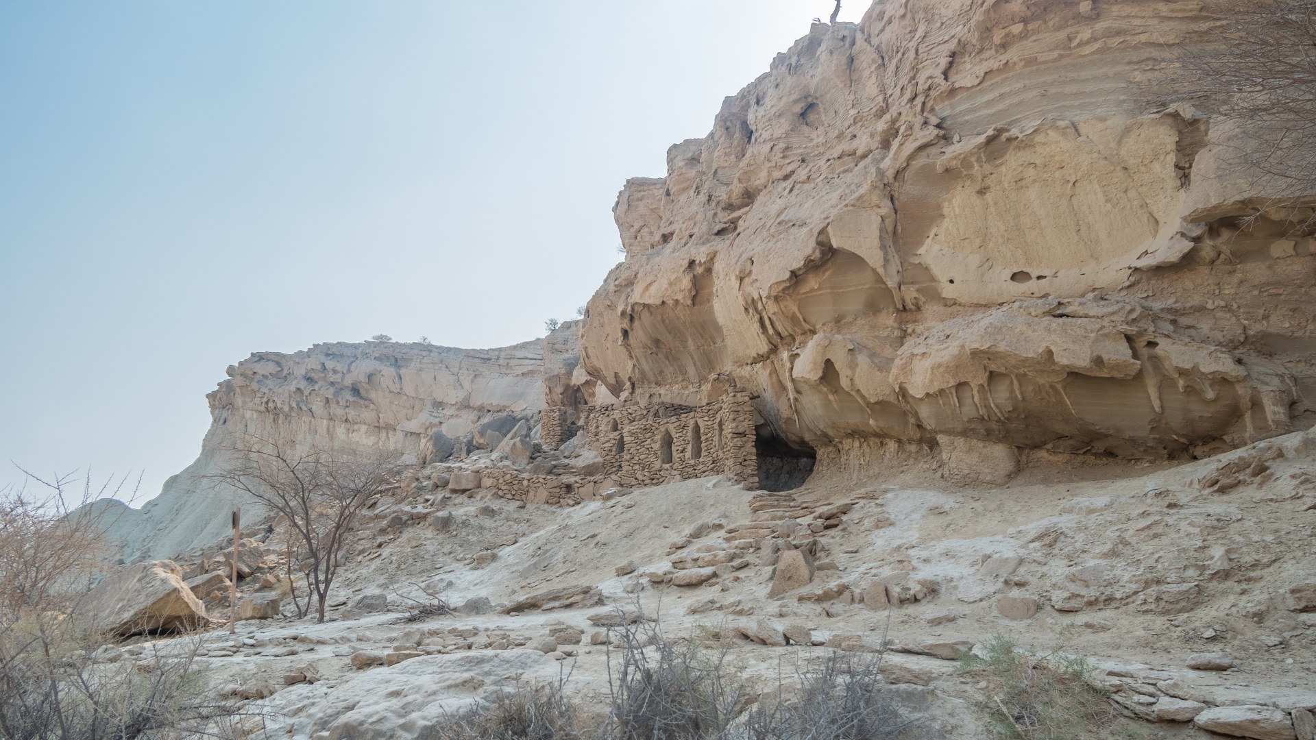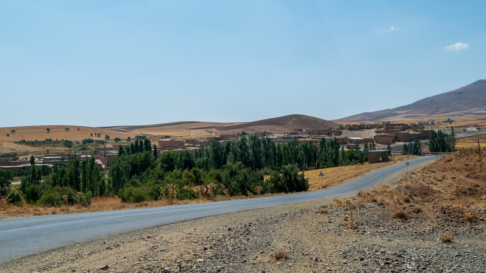 Живописна даже дорога сюда — последние километры перед деревней идут через небольшое ущелье с песчаными, изрытыми пещерами горами. В Абьяни мы и заночевали.