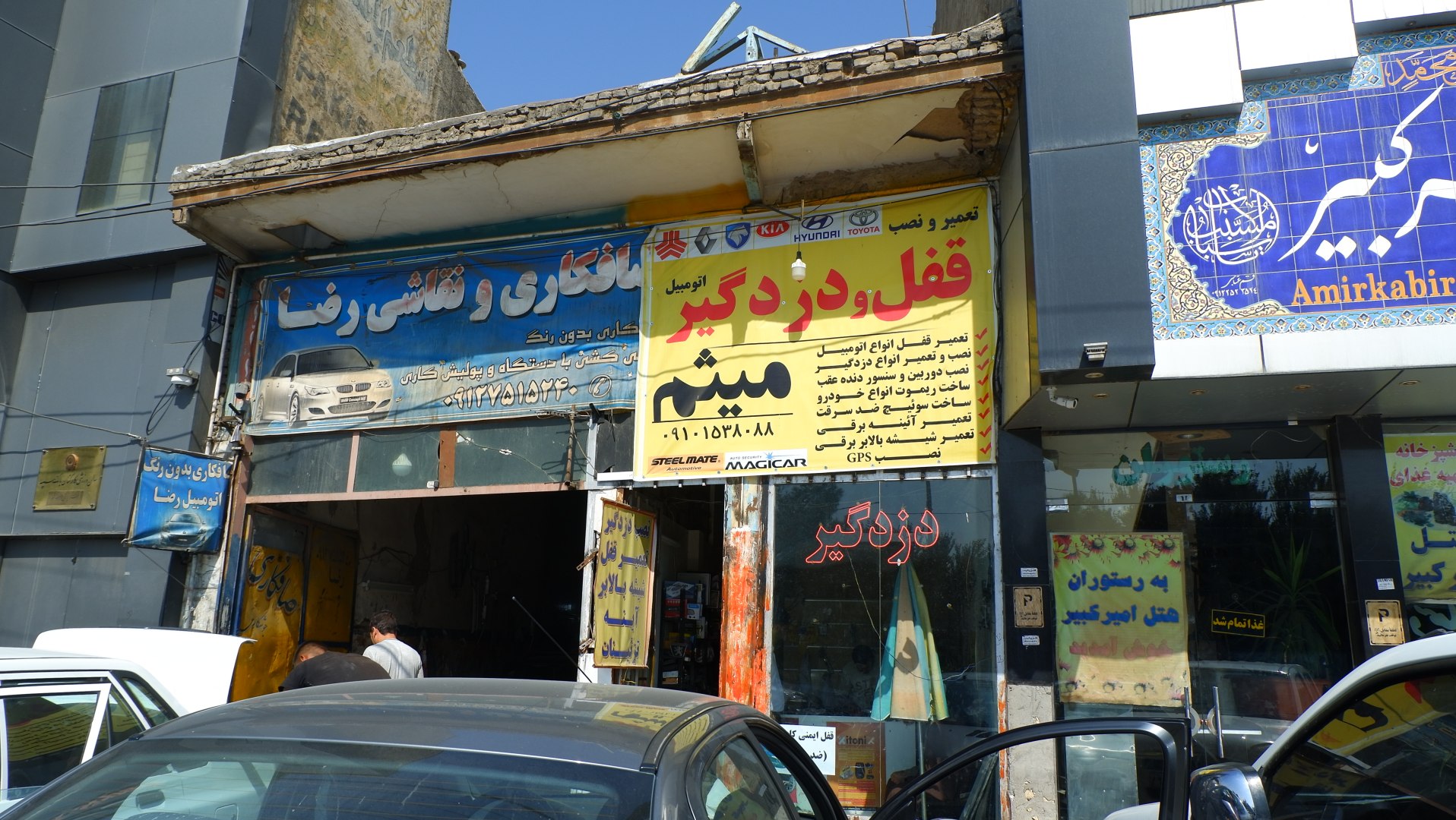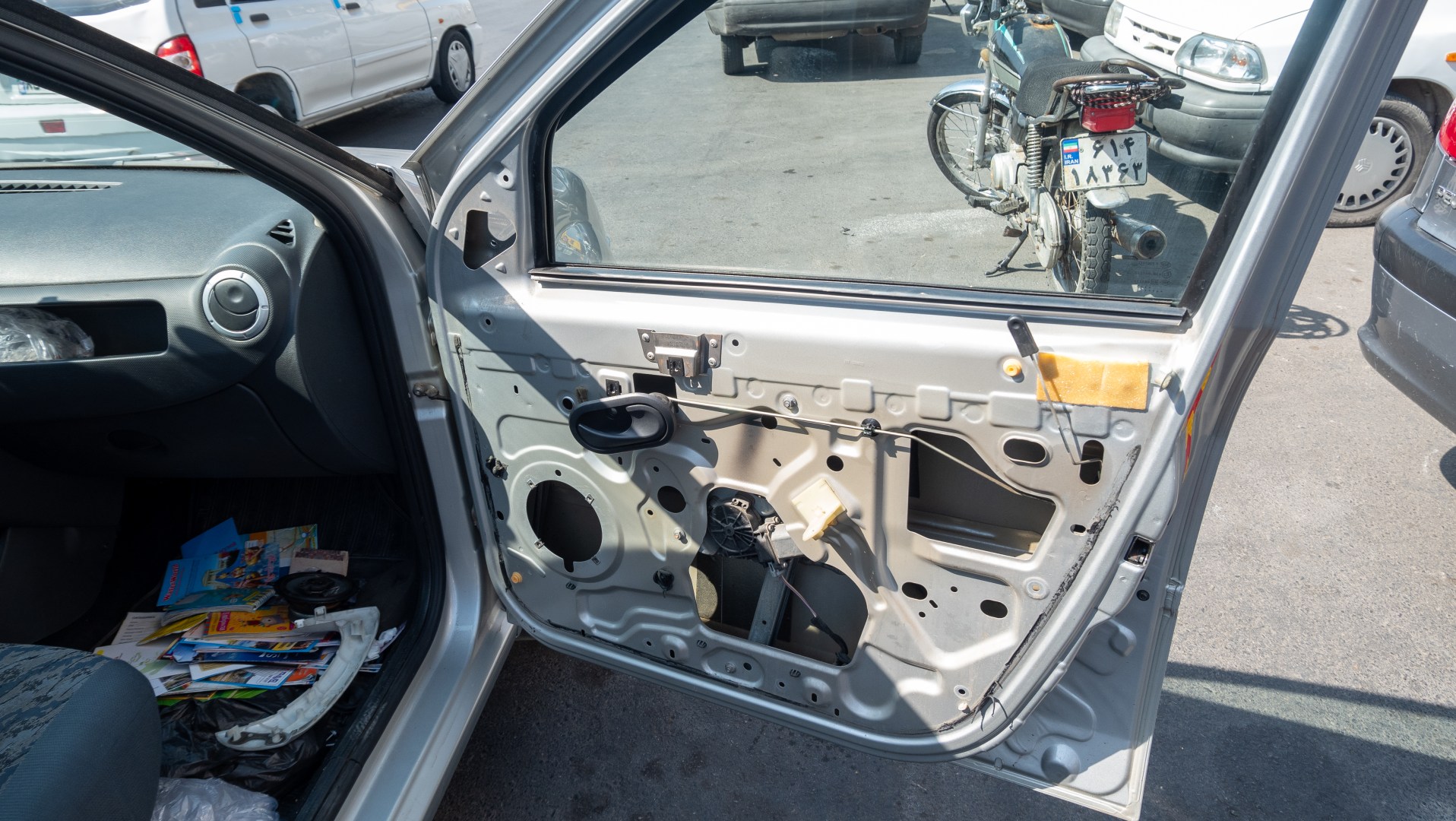 Там нам разобрали всю дверь, с горем пополам сняли и разобрали зеркало. И хотя нужно было просто заменить зеркало (у местных логанов зеркала меньше, но были согласны и на это), они решили его чинить. 1.5 часа усилий, толпа сочувствующих советчиков, взмокший «Кулибин и одуревшие в машине от скуки дети – вот цена этого решения. При этом мы сразу, с целью экономии времени, сказали, в чем там проблема, но выглядело это так: Сережа объяснял на русском, а на английский переводила Иринка, менеджер отеля переводил с английского на иранский сотруднику сервиса, а того, в свою очередь, коробило слушаться женщину, да и еще «шурави», «рус», поэтому он делал вид, что «ходят тут всякие». Но в итоге мы все равно оказались правы.
