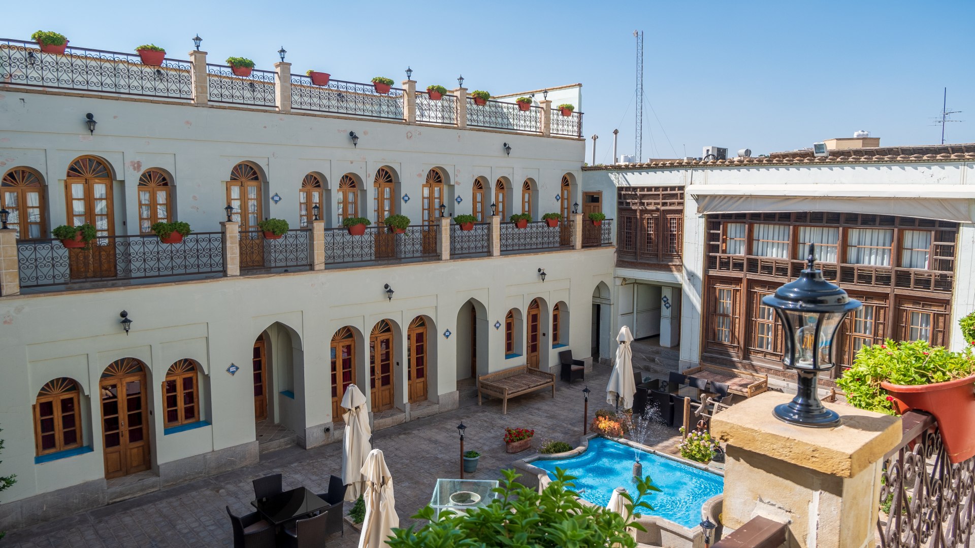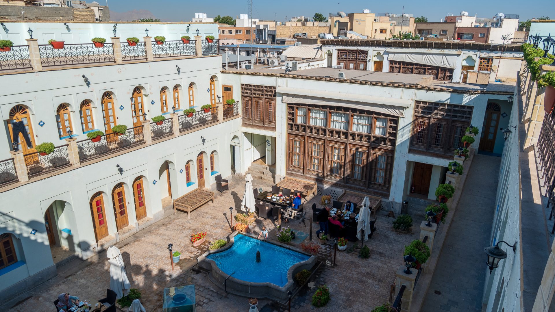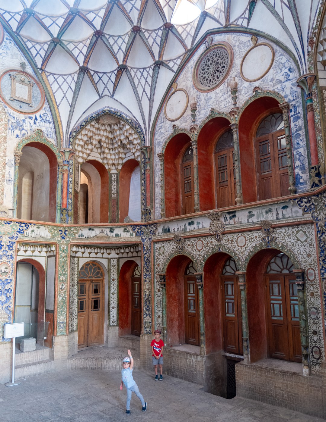 Ibesina Traditional Hotel / Atigh Traditional Hotel — самая тихая и симпатичная гостиница, что мы посетили в Иране. Уютный обновленный караван-сарай, с фонтанчиками и столиками для завтрака вокруг них, отзывчивый персонал с отличным английским, а главное, искренне доброжелательные сотрудники. В этой части страны многие относятся к иностранцам, как к овцам — лишь бы «остричь». А в этом отеле хозяин даже подарил детям картину на стену с национальными мотивами и наказал следить за дочкой, потому что «такую девочку тут все хотят».