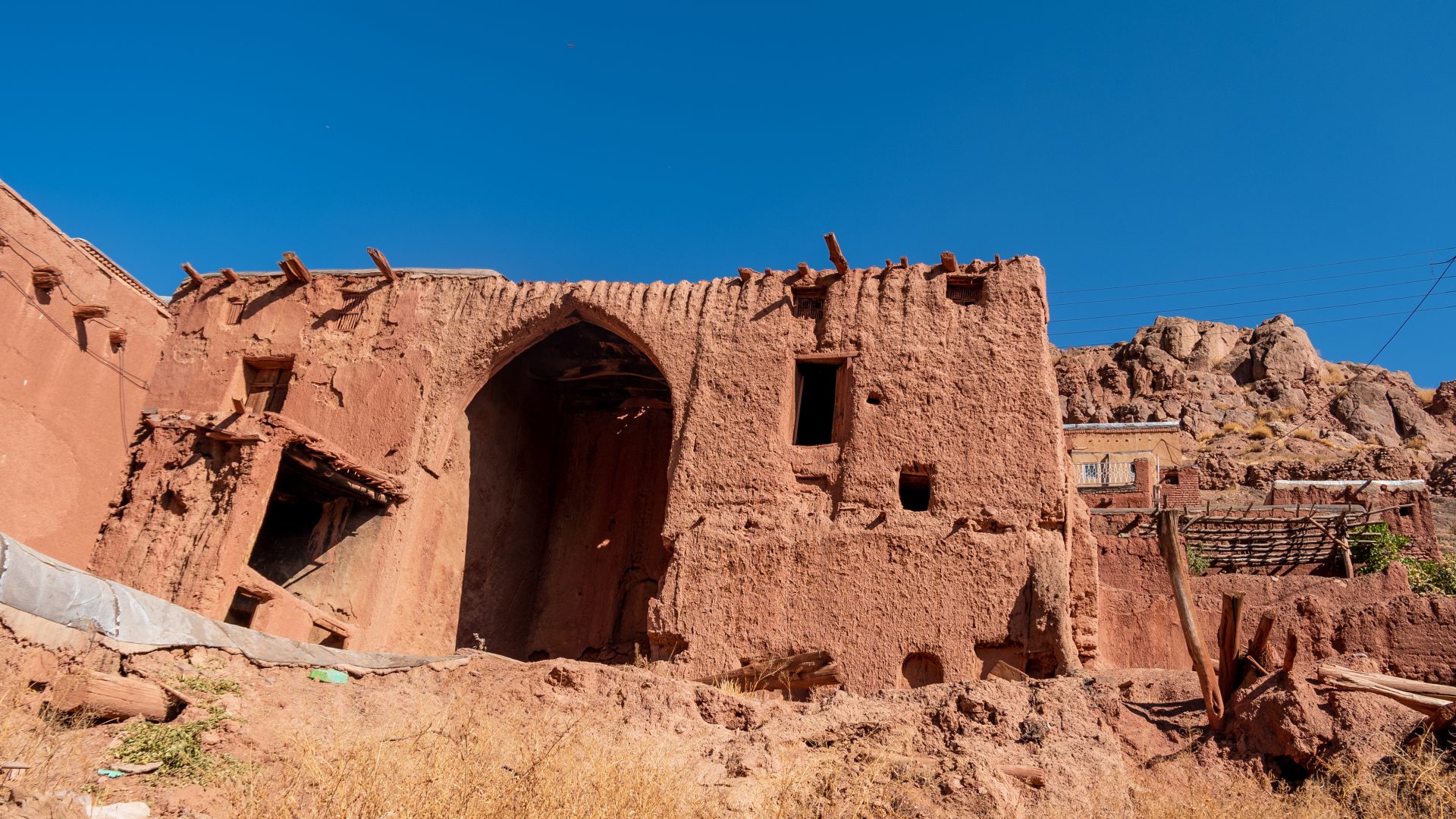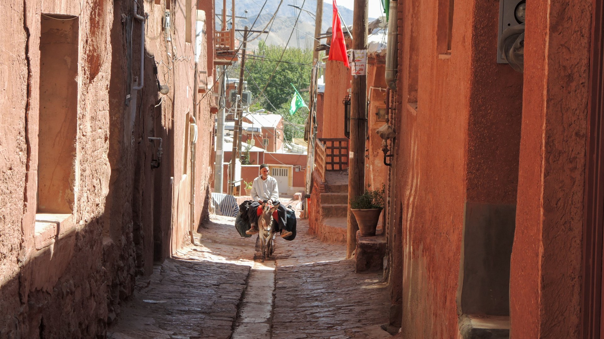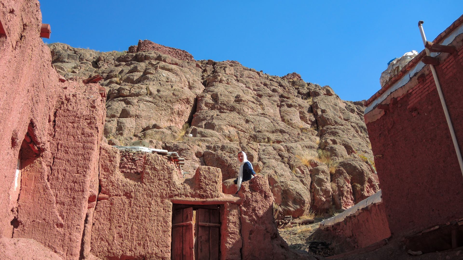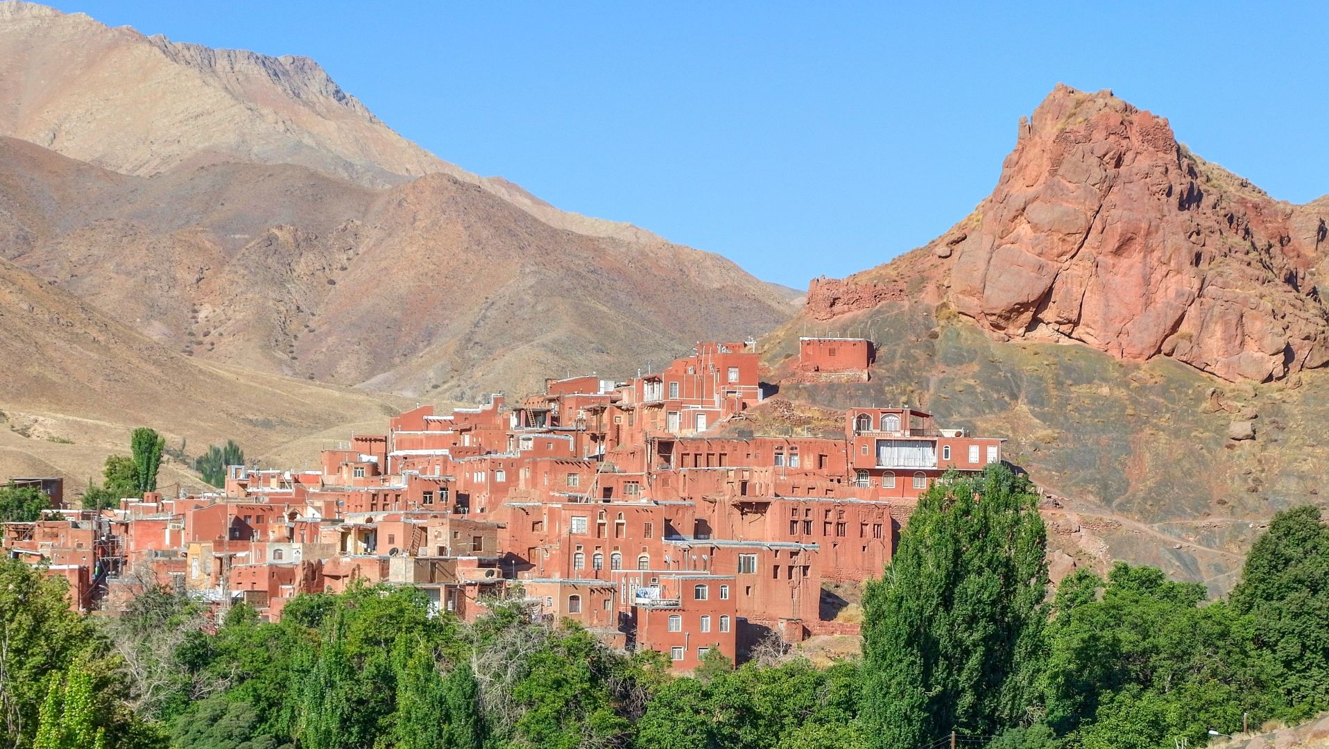 Одна из особенностей деревни — ее цвет. Она вся красная. Здесь дома снаружи обмазывают смесью глины и соломы, а в Абьяни горы, песок и глина ярко красного цвета.