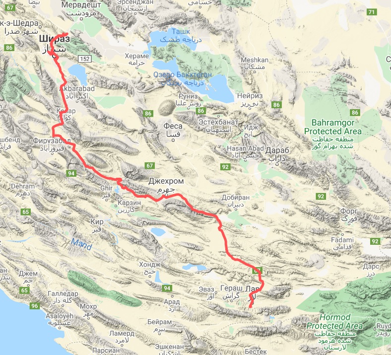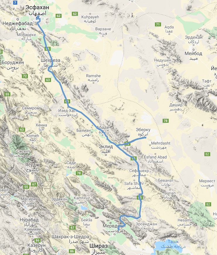 Далее отправились в Мейманд, пещерный город. Да вот беда: в Иране, как выяснилось, как минимум 2 Мейманда. И да, мы приехали не в тот. Нужный оказался в 300 км по вектору в северо-восточном направлении. А мы так радовались, что Мейманд нам по пути — как раз едем на юг из Шираза. Оказалось, по пути совершенно левый одноименный посёлок ((( Посидели, подумали, и решили немного перестроить обратный маршрут, чтобы не терять нужный Мейманд из маршрута.