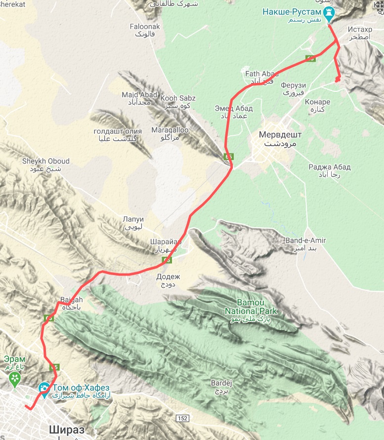 А еще в 60 км от этого комплекса находится город Шираз. Туда мы и поползли, когда окончательно сварились на солнце возле гробниц. Термометр показывал +36, и ни намека на тень. Так что в Ширазе, заселившись в отель, мы просто попадали под кондиционером, и час остужались.