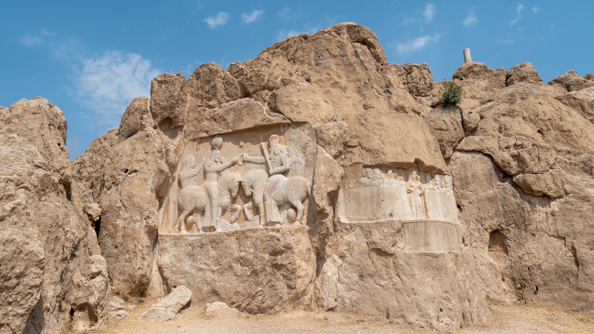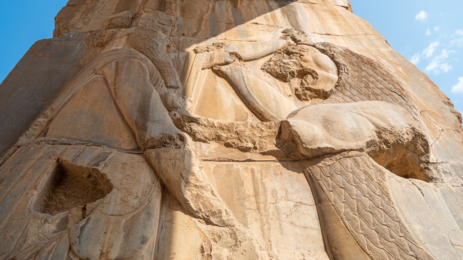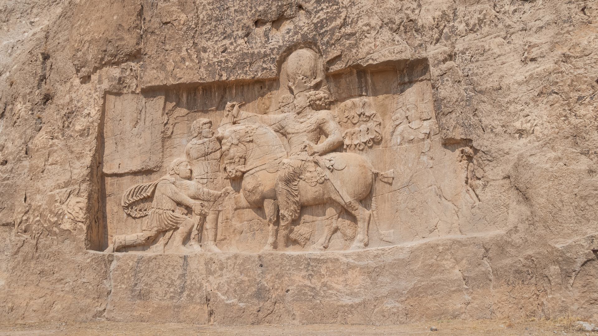 Буквально в трёх километрах находятся гробницы царей, в том числе и Дария Второго. Огромные гробницы высечены в скалах, у них большие крестообразные входы, с выбитыми в породе рисунками и надписями.