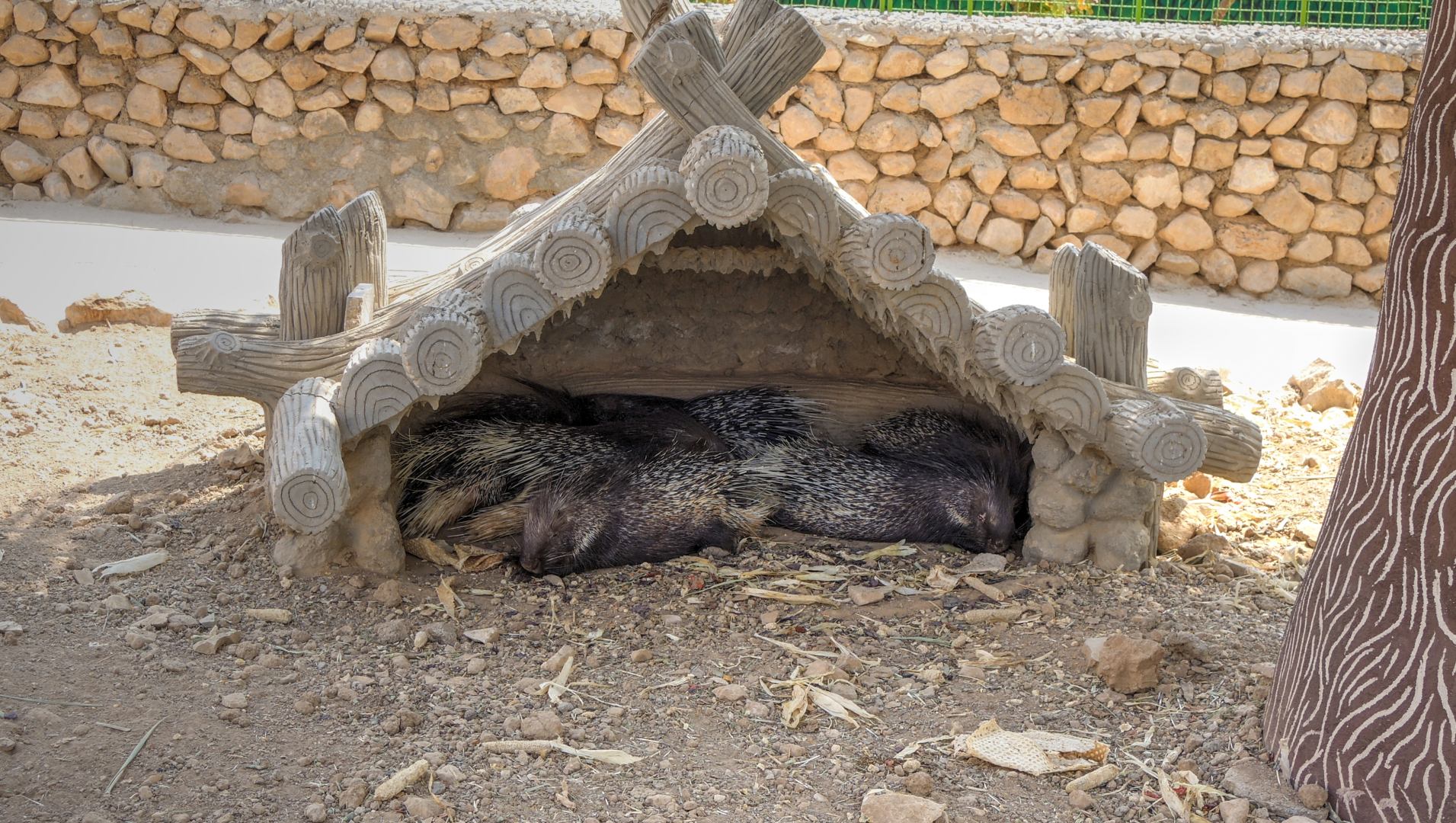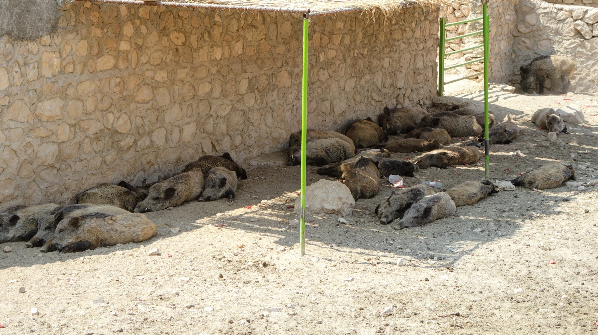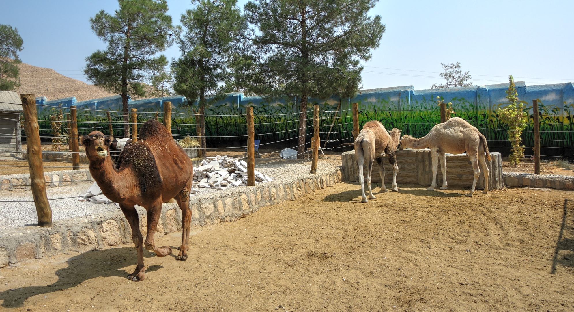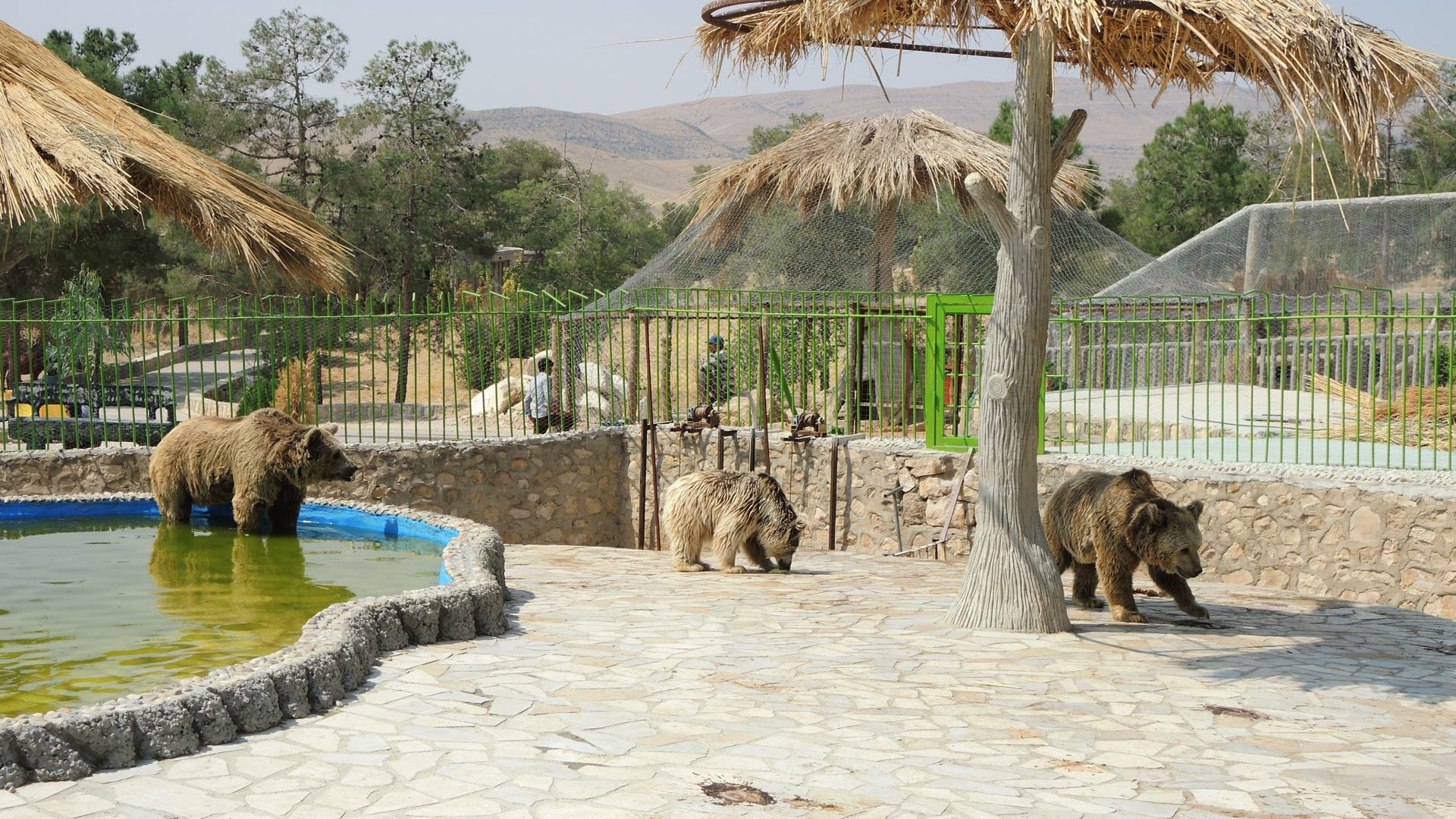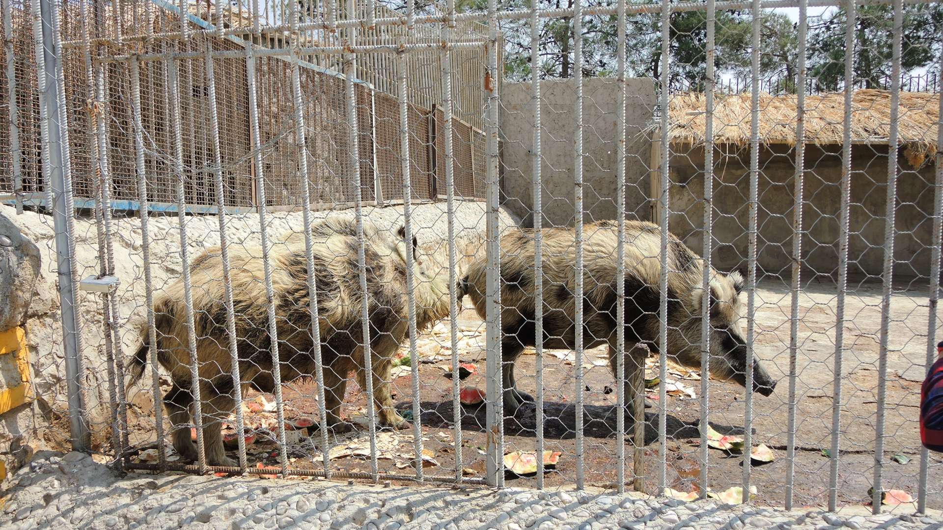 Мало того, что климат для них не особо подходит, так они ещё, вместе со страусами и кабанами, сидят на хлебно-арбузной диете. Хочется верить, что мясо им все же дают. Особенно жалко несчастных бурых медведей — они сидят под соломенными зонтиками на жаре, с арбузом в миске. А ещё тут несколько вольеров кошек и собак. Не породистых, а самых обычных, типа «тузик дворовый». При этом ценник на зоопарк для не-иранцев просто космический. Иранцы платят раз в 10 меньше.