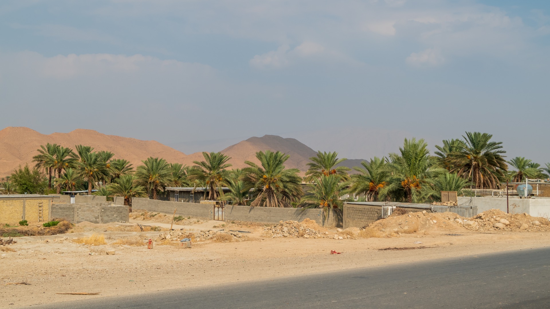 Зато мы глубокого и основательно залезли в какой-то очень-очень не туристический Иран. Дикая глушь! Горы, серпантины, деревеньки…. Предыдущий унылый пустынный пейзаж резко разбавился зеленью, а вскоре и вовсе потянулись финиковые пальмы. Странное сочетание — высоченные лысые горы и пальмовые заросли, высокогорные озера.