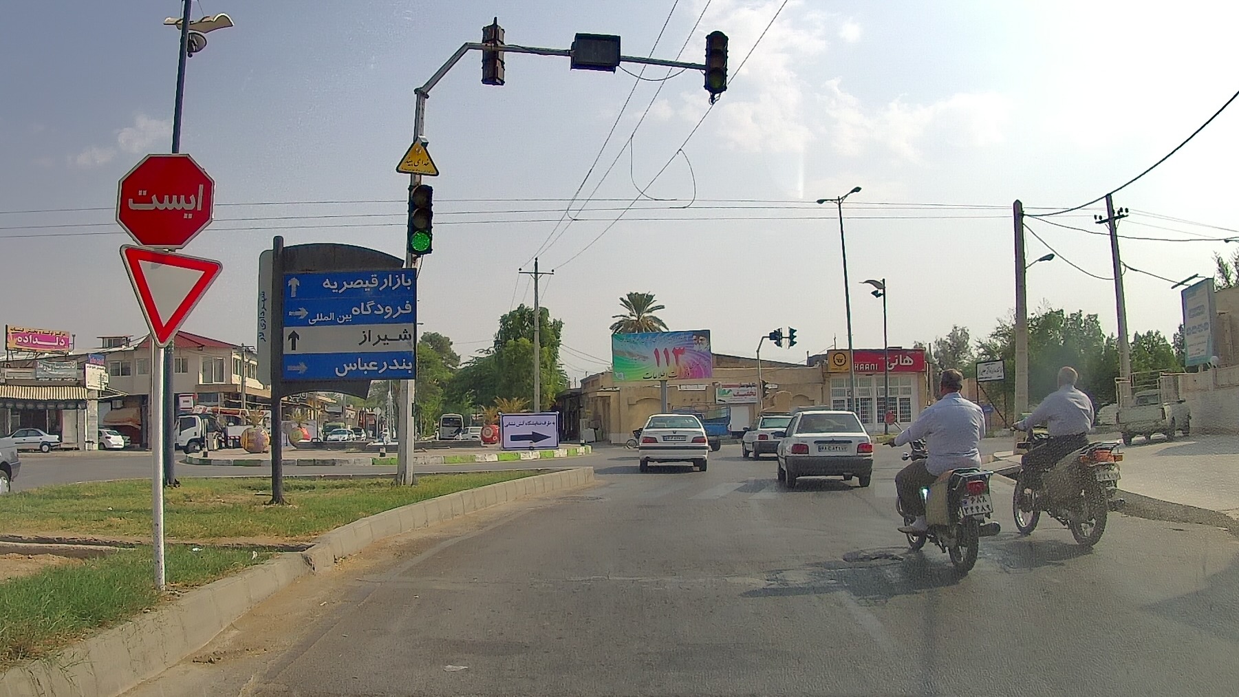 Ну что ж, будем смотреть реальную жизнь иранцев вдали от городов. Проблема только с поиском ночлега — тут пришлось попотеть, чтобы найти, куда приткнуться на ночь. Заночевали в городе Лар, напротив городской тюрьмы, в единственном реально работающем отеле, куда удалось заселиться только со второго раза, буквально уговорив портье пустить нас, хотя свободных мест было полно. А пока заселялись, машину заметили стражи правопорядка и очень хотели за что-нибудь оштрафовать. Но языковой барьер, а также тот факт, что машина стояла на внутренней стоянке отеля и не двигалась, сильно затрудняли возможность выпросить денег. Проверив все, что только можно, было они с явным сожалением отстали. А машину пришлось перепарковать за угол.