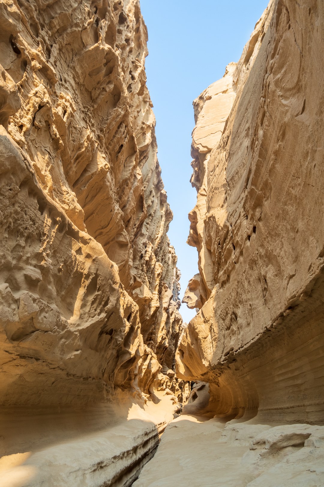 Каньон представляет собой огромное узкое ущелье с изгибающимися стенками серо-оранжево-красных гор. Чтоб пройти по долине, порой приходится карабкаться на выступы скал, или перескакивать валуны.