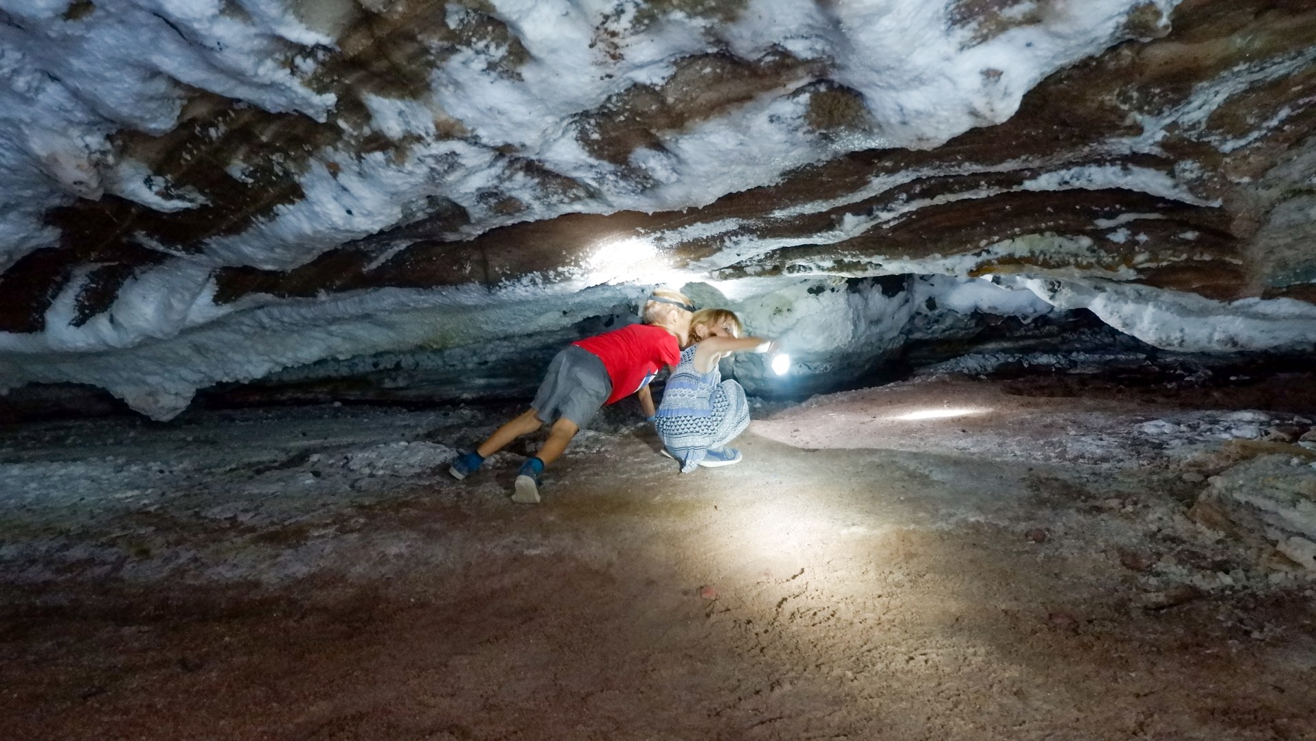 Однако пройти мы смогли только часть пути, а дальше пещера сузилась настолько, что нужно было ползти на пузе по соляной крошке. На такие подвиги мы не решились.
